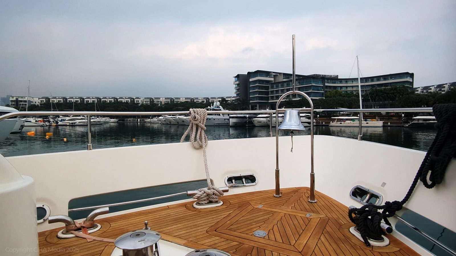 - Stainless steel cleats, capstans, fairleads, and mooring gear