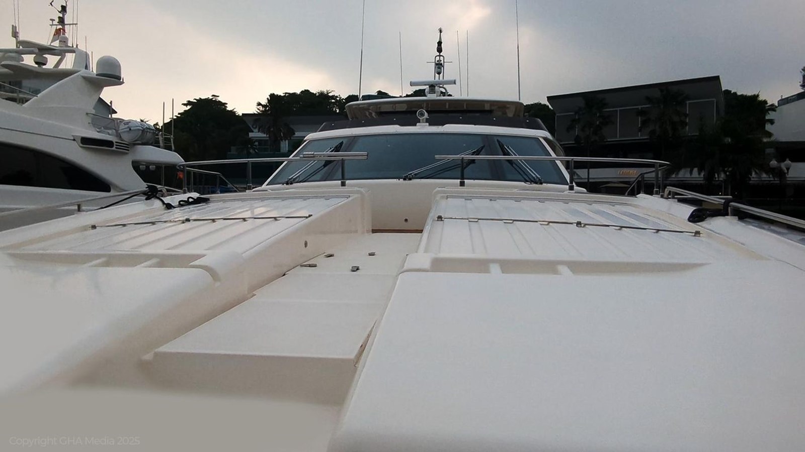 - Large flybridge with grill, bar, and sun loungers