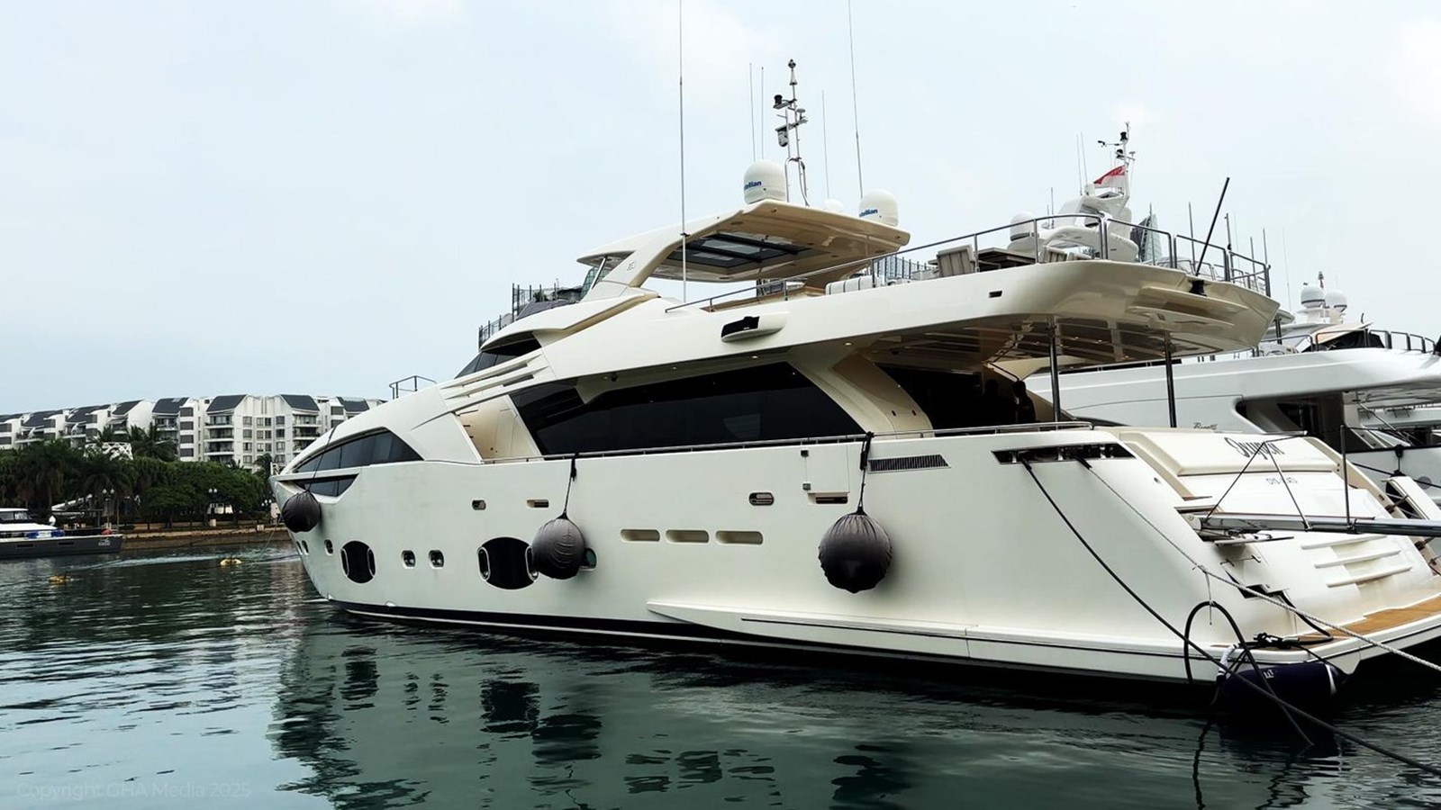This 2015 Ferretti Custom Line 100 has had just one owner since new and has been privately used—never chartered. Based in Asia since delivery, she was originally in China and is now located in Singapore. The yacht has been looked after by a full-time professional crew and used mainly for relaxed weekend cruising and entertaining friends and family. She features a 5-cabin layout including a full-beam master on the main deck, two VIPs, and two twin cabins below. The interior is bright, spacious, and finished in classic Ferretti styling. Outdoor areas are well laid out, with a large f lybridge, forward sunbathing area, and a comfortable cockpit for alfresco dining. Powered by twin MTU 16V 2000 M94 engines, she cruises comfortably at 20 knots and tops out around 27 knots. She’s fitted with zero-speed stabilisers for comfort at anchor and underway.