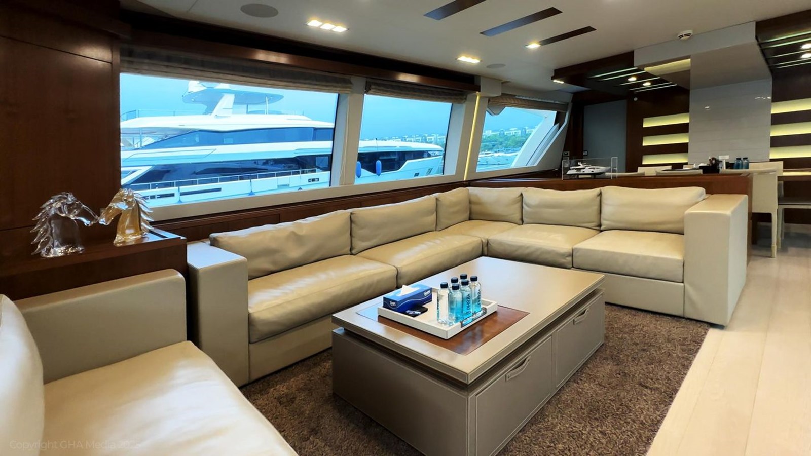 - Galley Appliances: Full-size fridge, oven, stove, microwave, dishwasher, icemaker, wine cooler