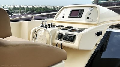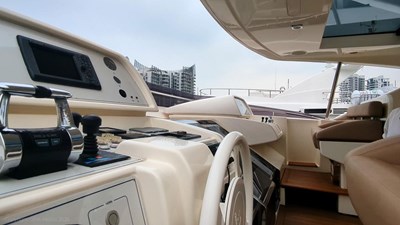 She features a 5-cabin layout including a full-beam master on the main deck, two VIPs, and two twin cabins below. The interior is bright, spacious, and finished in classic Ferretti styling. Outdoor areas are well laid out, with a large f lybridge, forward sunbathing area, and a comfortable cockpit for alfresco dining.