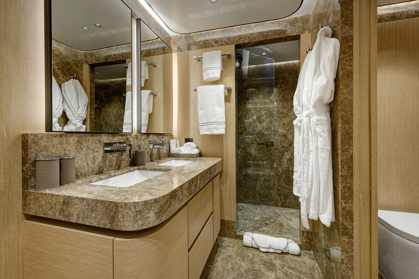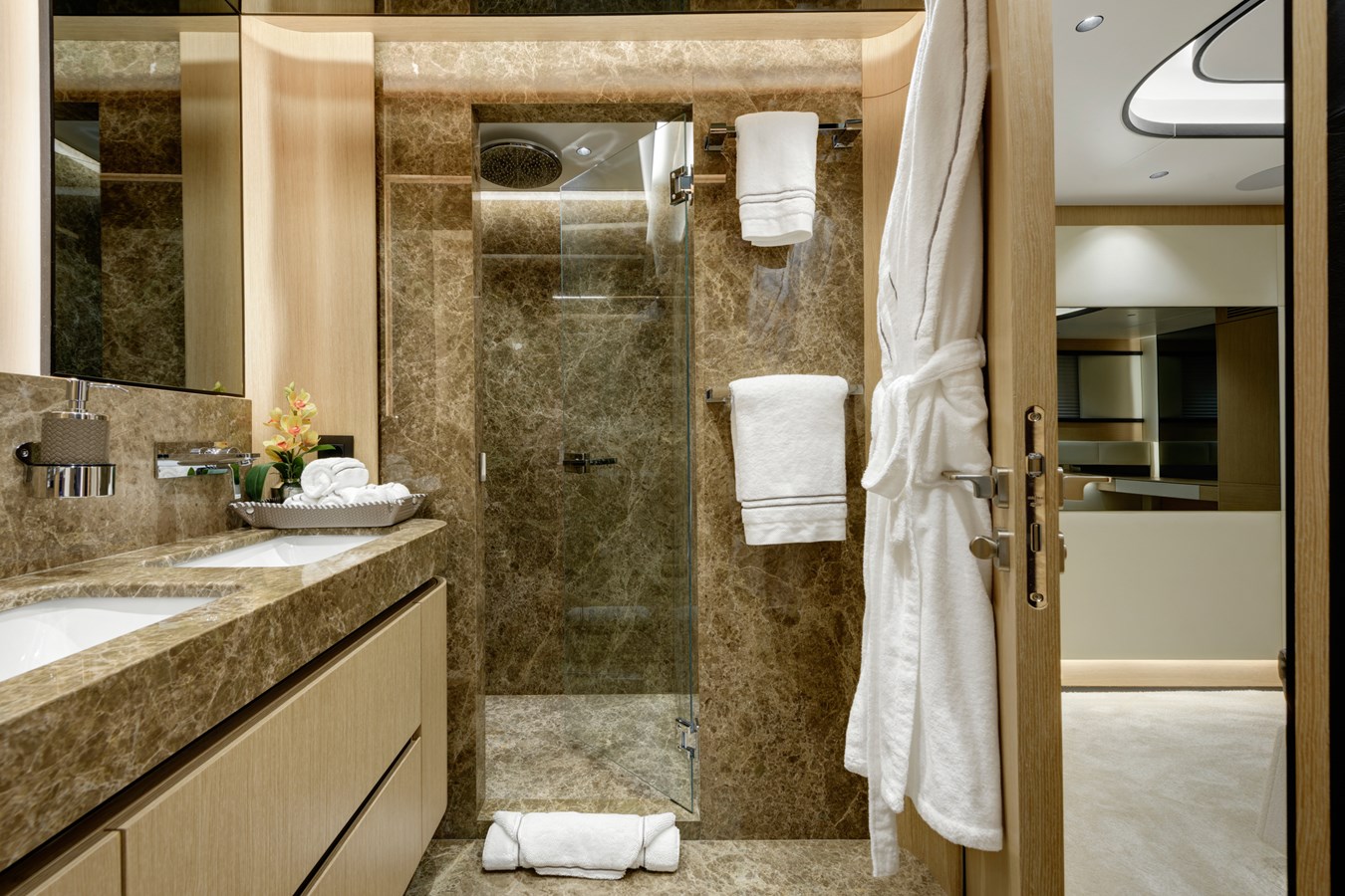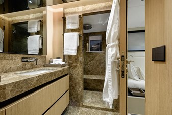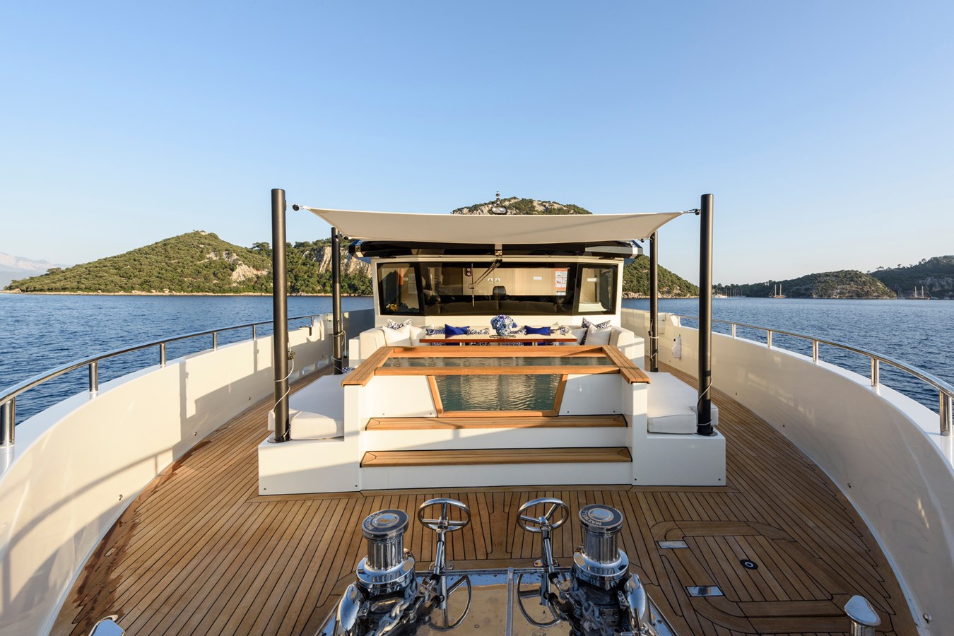 From a technical and lifestyle perspective, she offers an exceptionally well-balanced platform. A full-beam 20 m² owner’s suite, five en-suite staterooms accommodating up to 10 guests, and standout wellness features such as a Turkish Hammam and sundeck Jacuzzi place her firmly at the top of her class in terms of onboard experience.