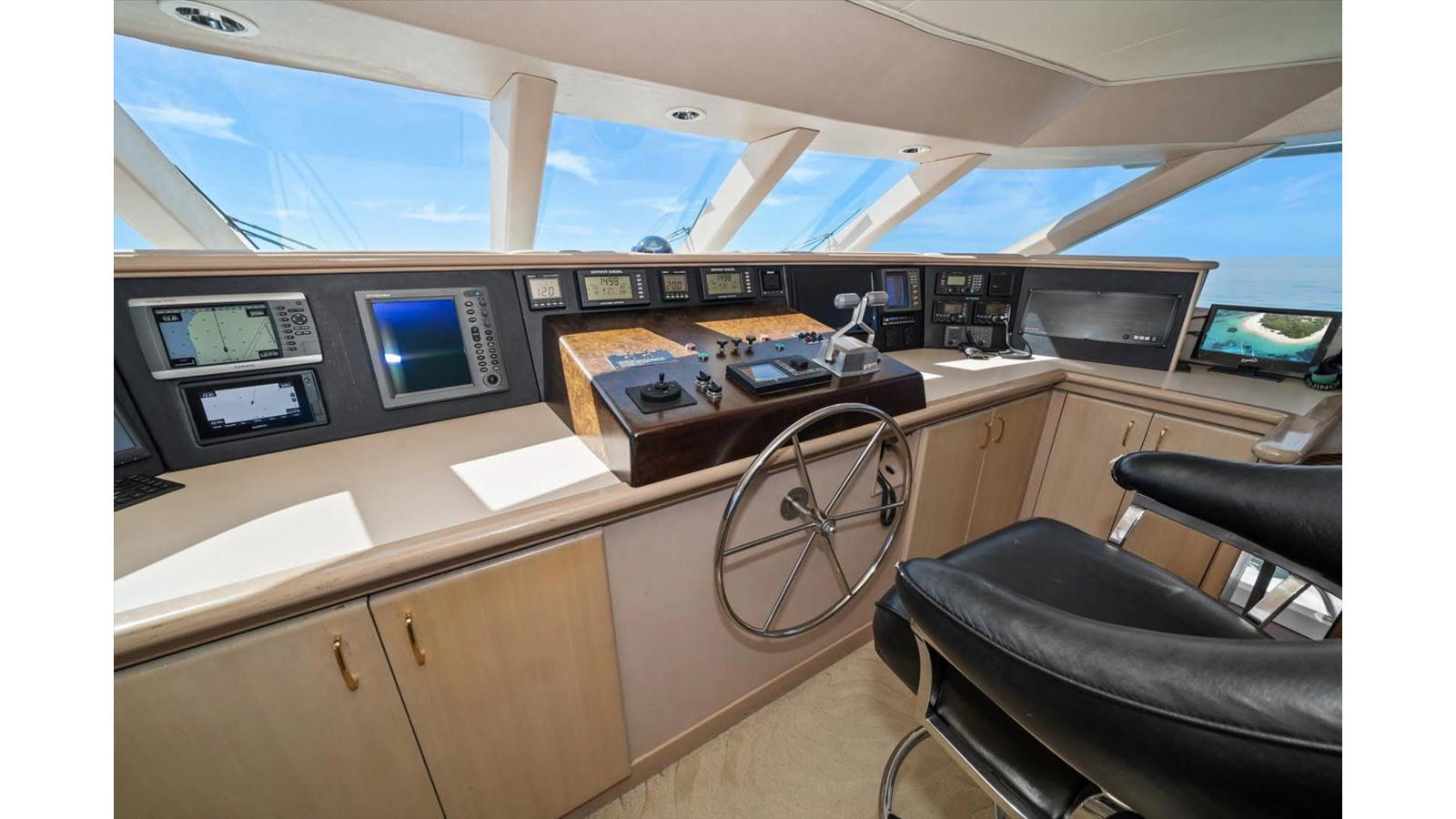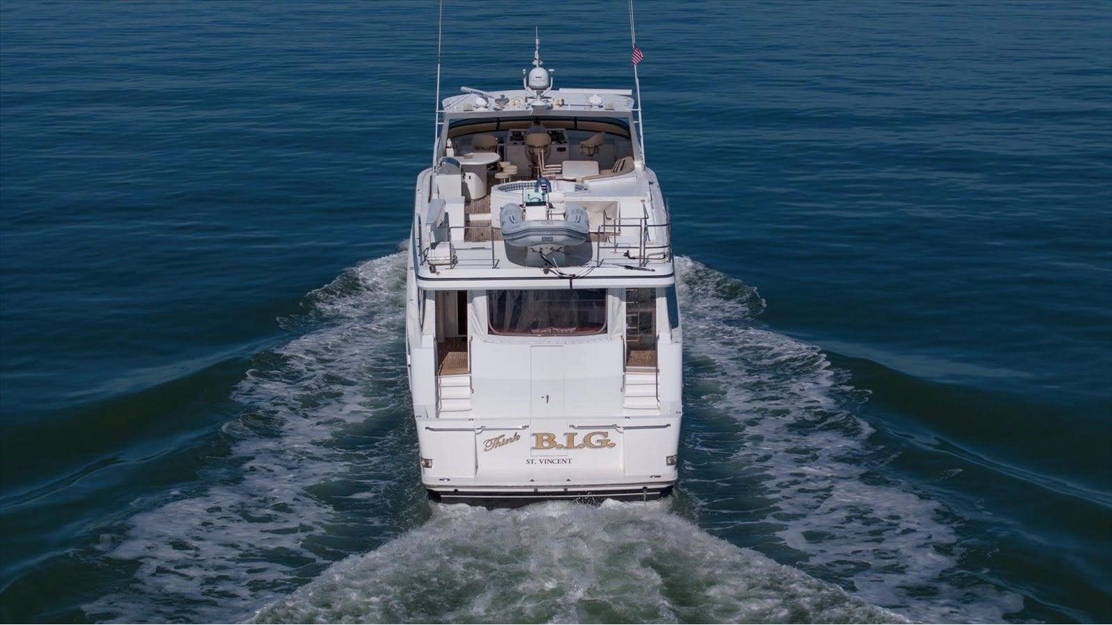 "Think B.I.G" is tastefully decorated in neutral colors throughout her spacious interior, featuring one owner and four separate ensuite guest staterooms along with crew accommodations for four. Featuring a large Country Kitchen & Gourmet Galley with a 8 to 10 person seating dinette. An incredibly large Fly Bridge/Sundeck area with a 6 person Jacuzzi, wet bar, and grill for the ultimate outdoor entertainment experience. "Think B.I.G.", is ready for her next water adventure.