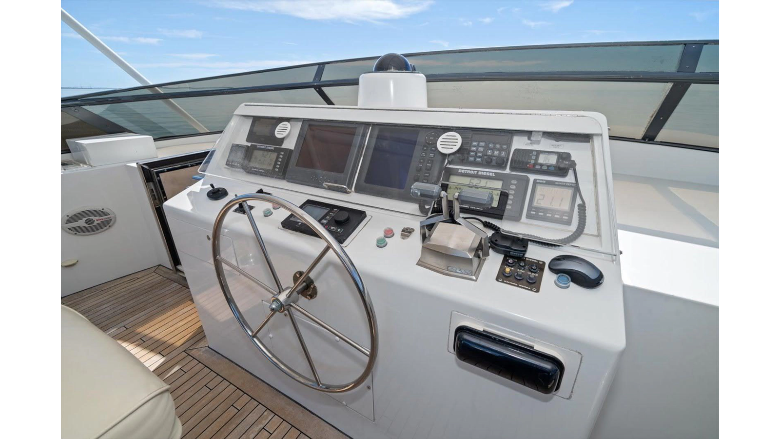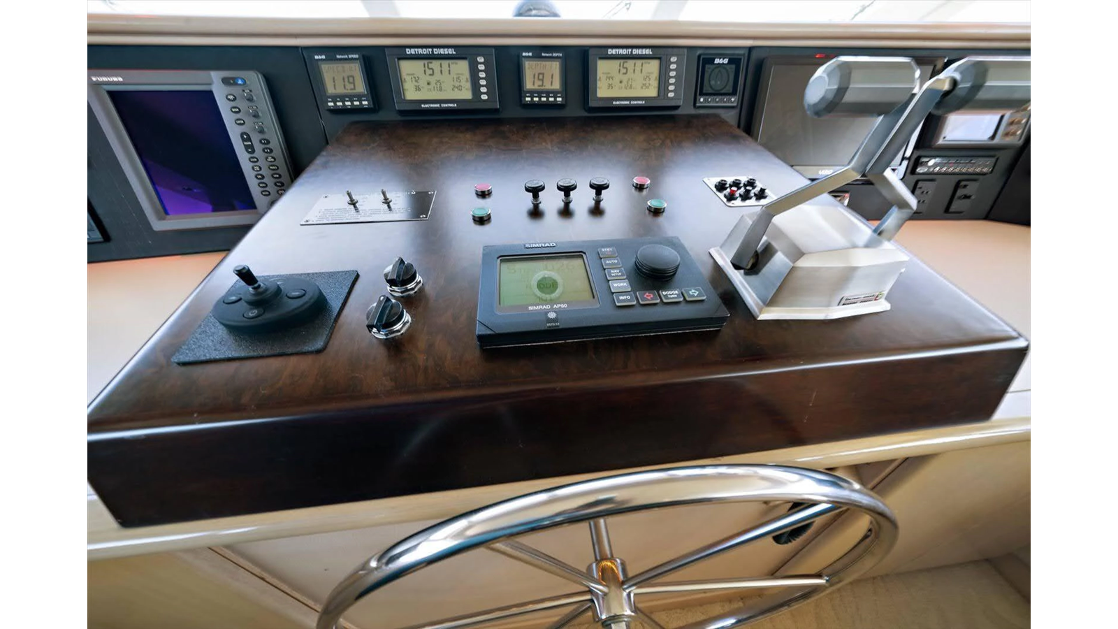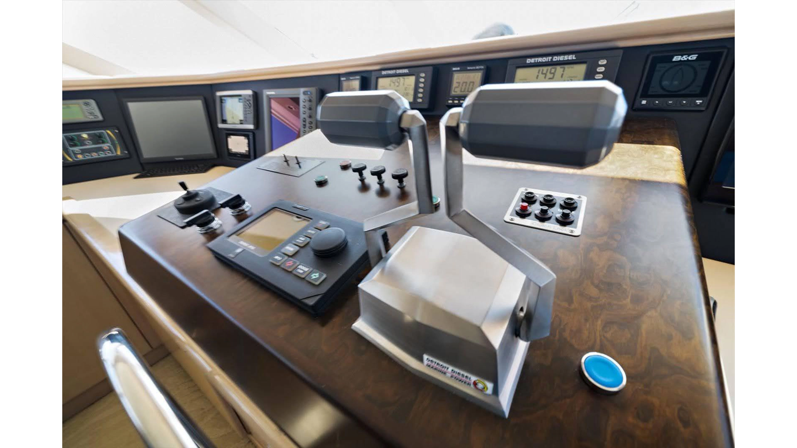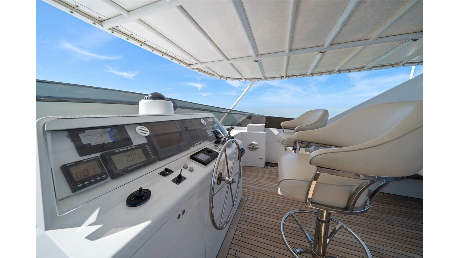 - Flybridge, pilothouse, hydraulic wheel steering with P&S wing control station on flybridge