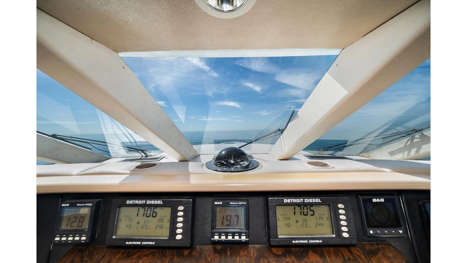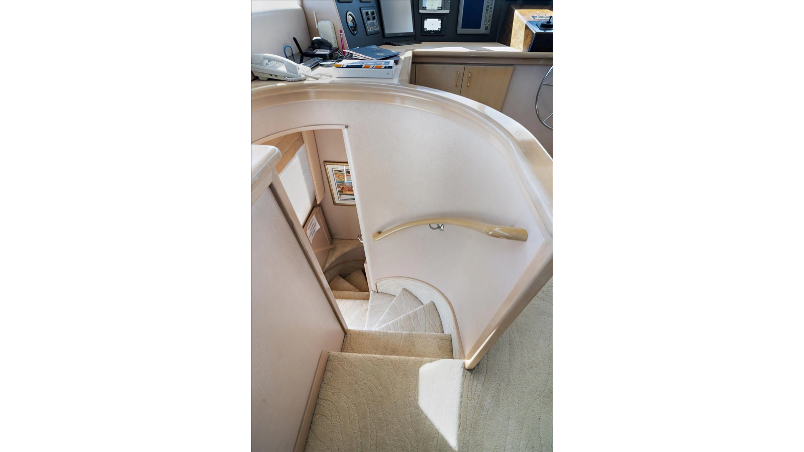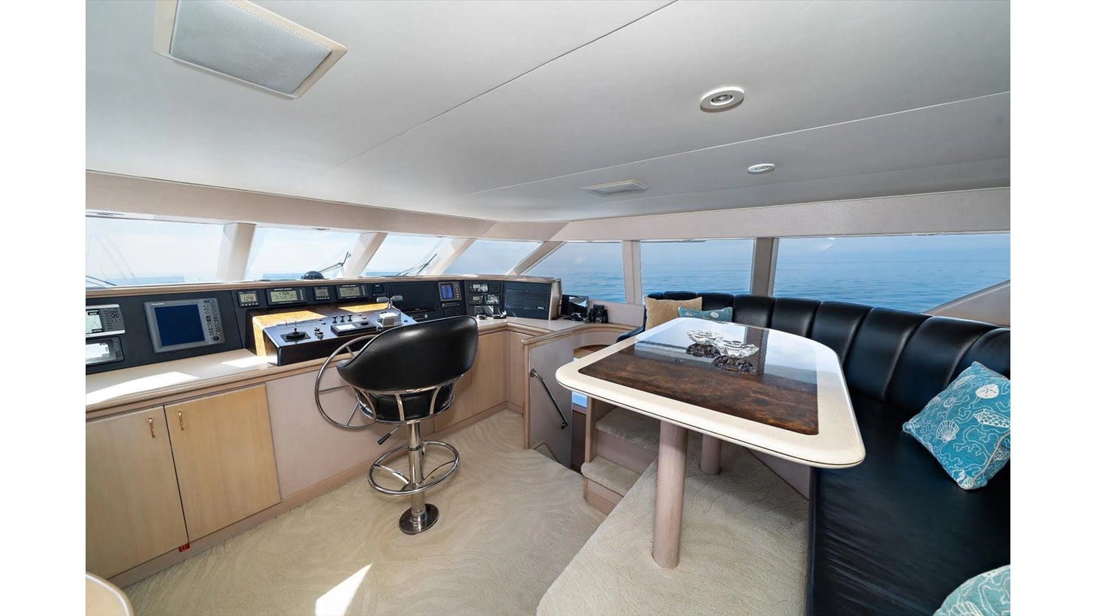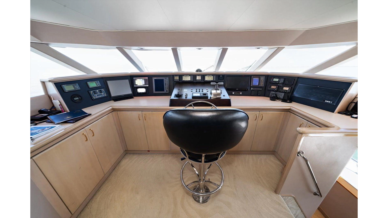 - Flybridge, pilothouse, hydraulic wheel steering with P&S wing control station on flybridge