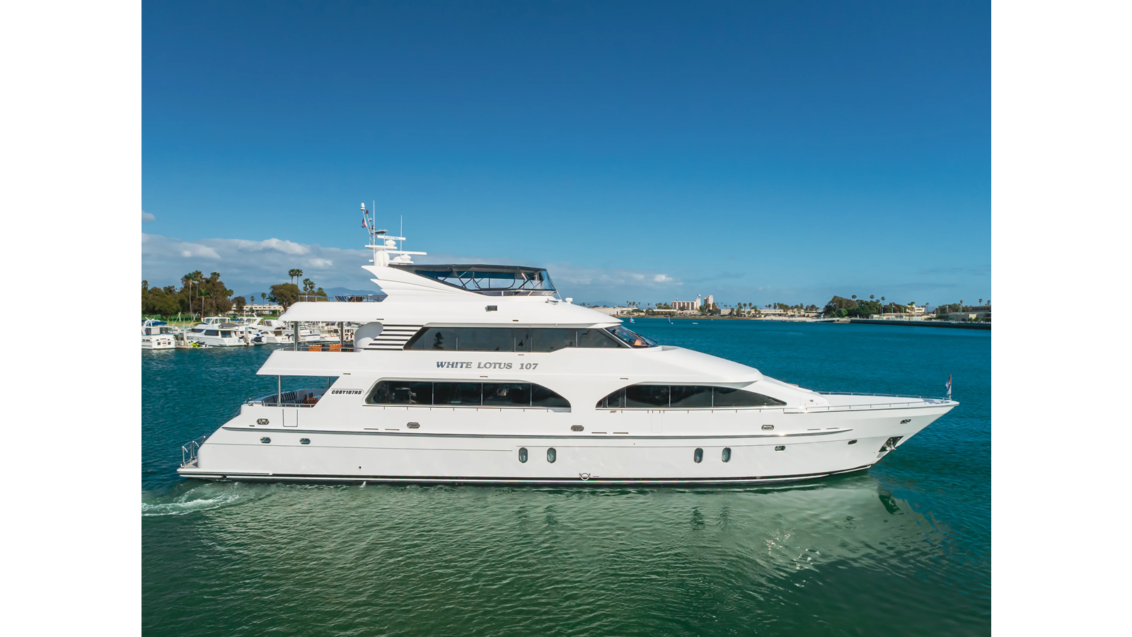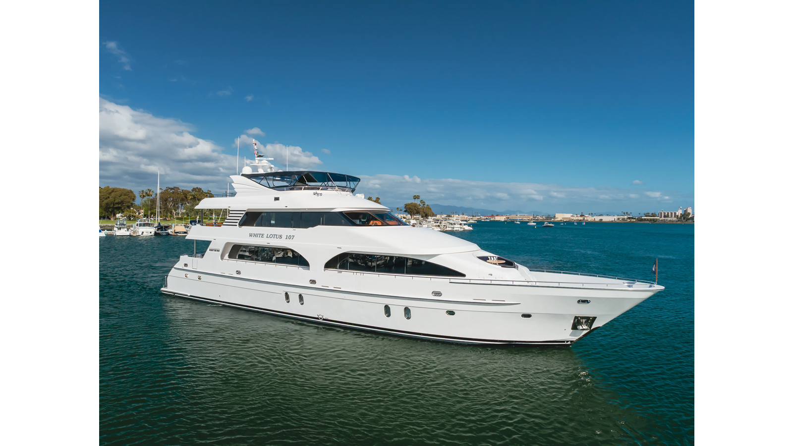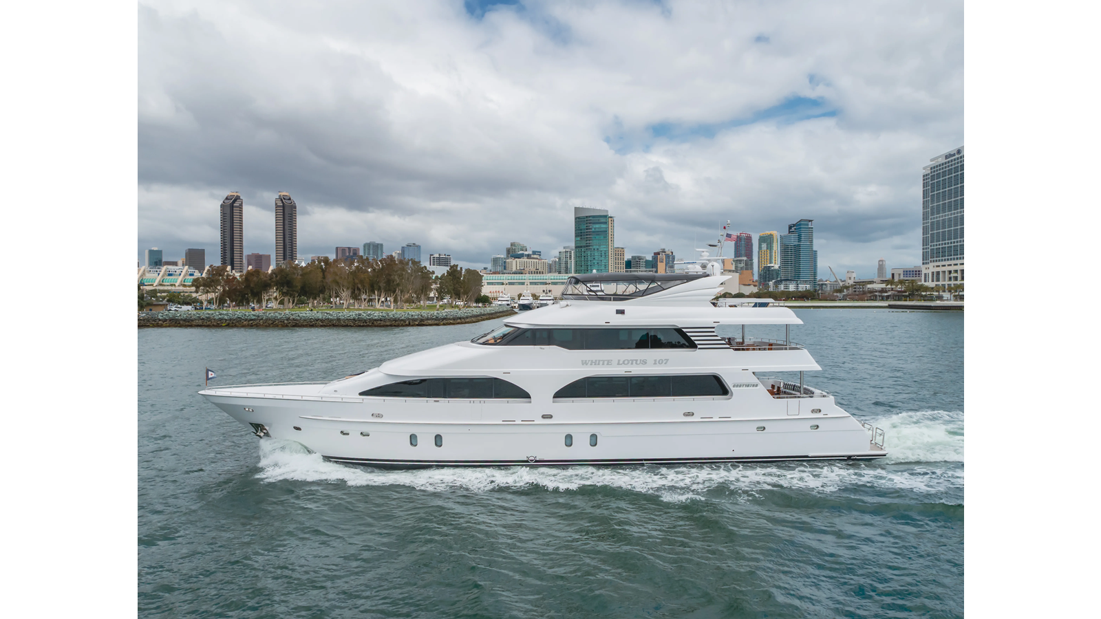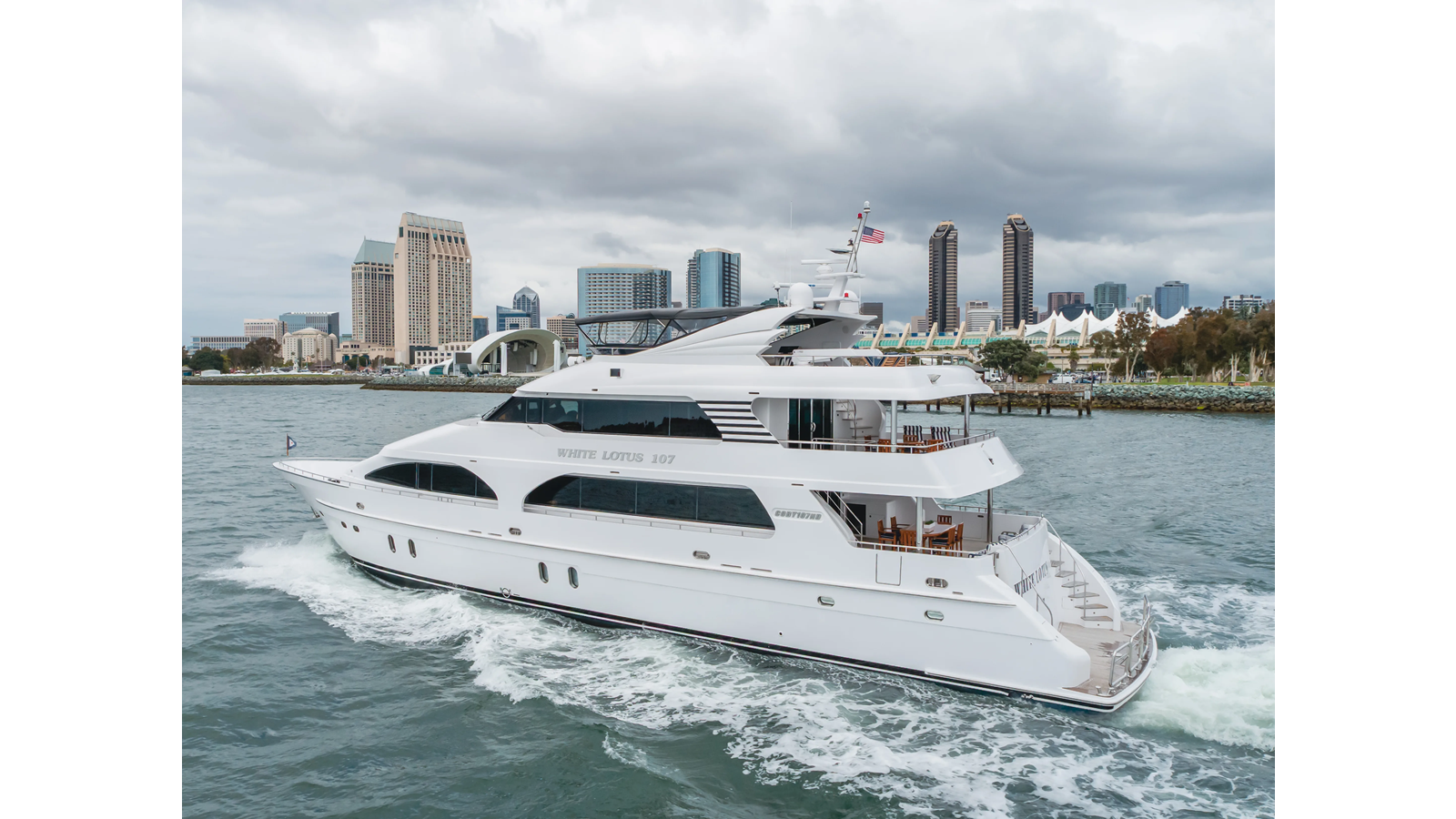 Yacht for sale is a 2011 PRESIDENT YACHTS 107' "White Lotus" Sterling Tri-Deck Motor Yacht in San Diego, California, USA.