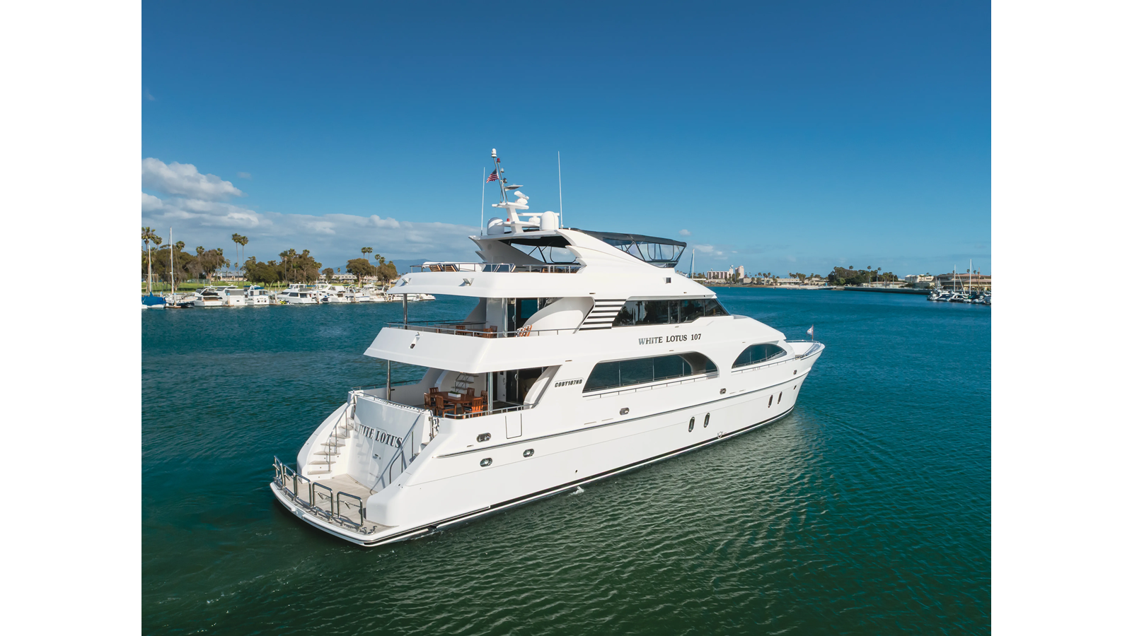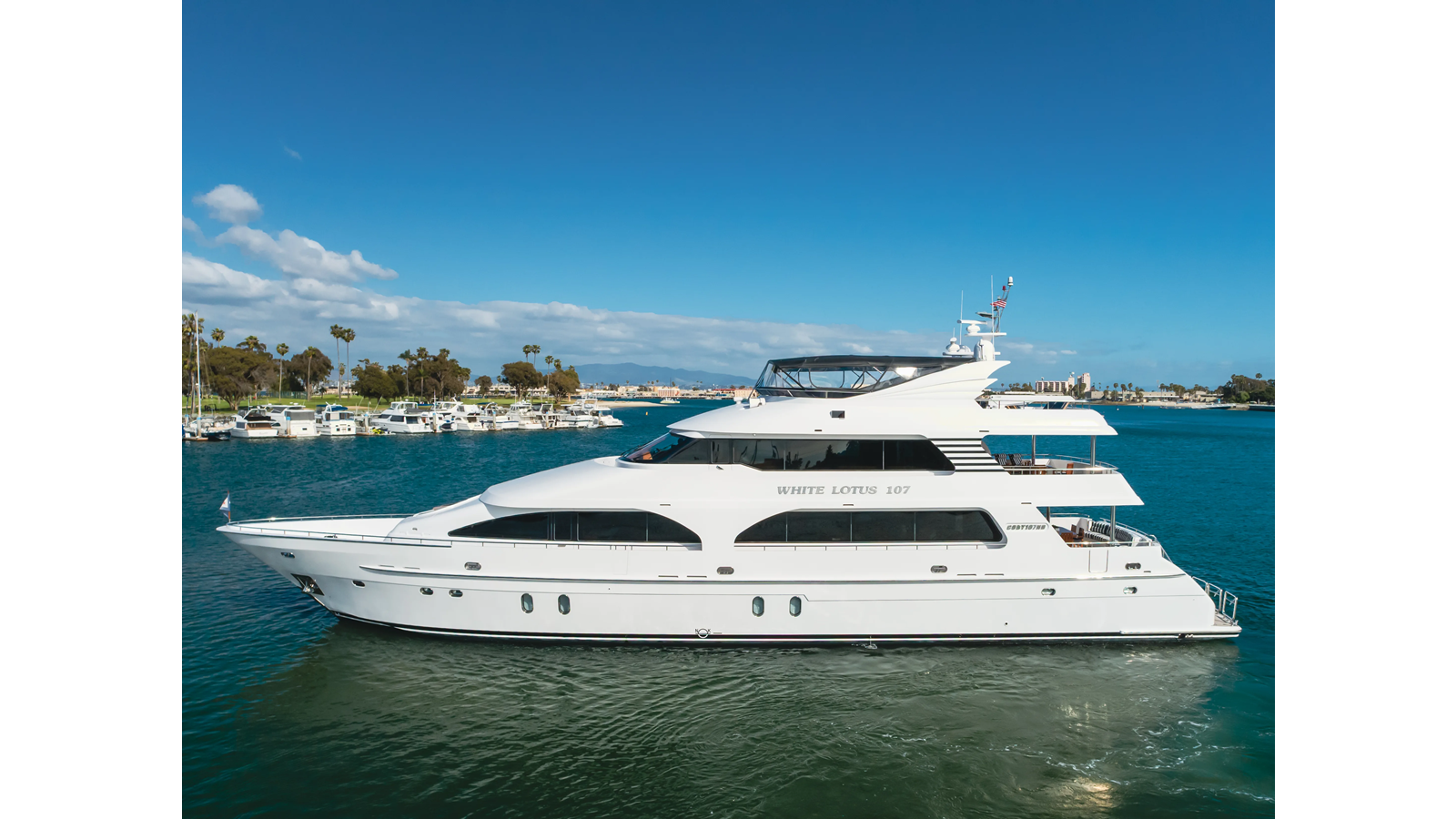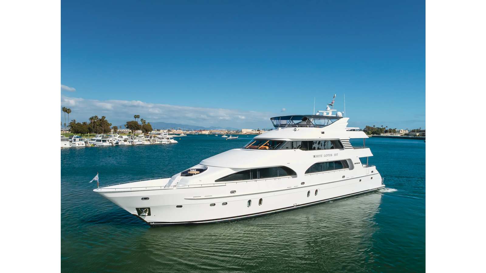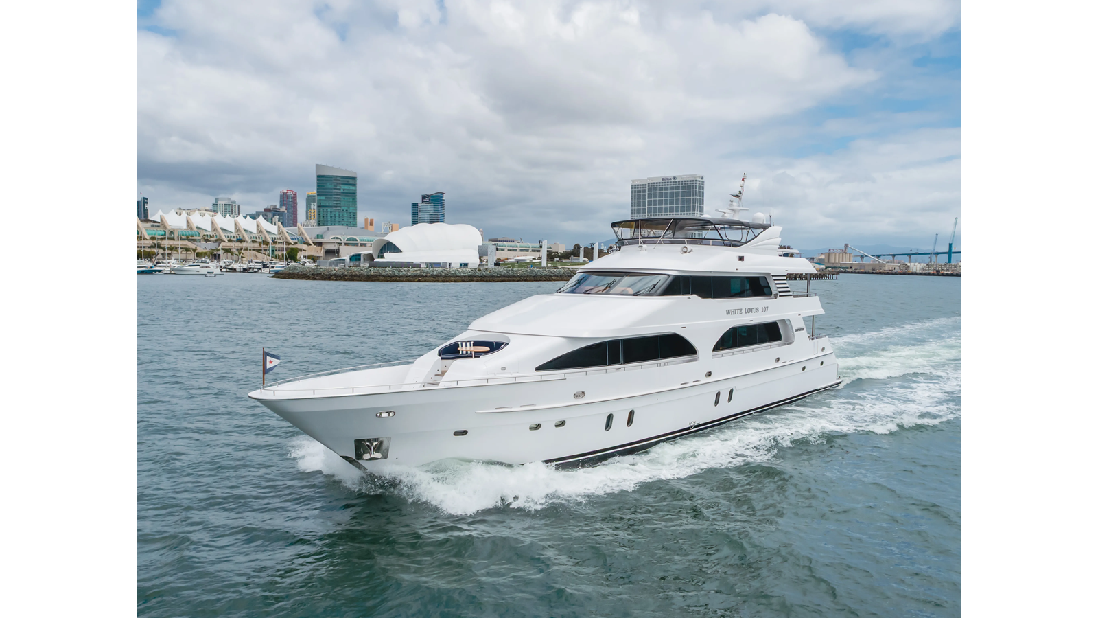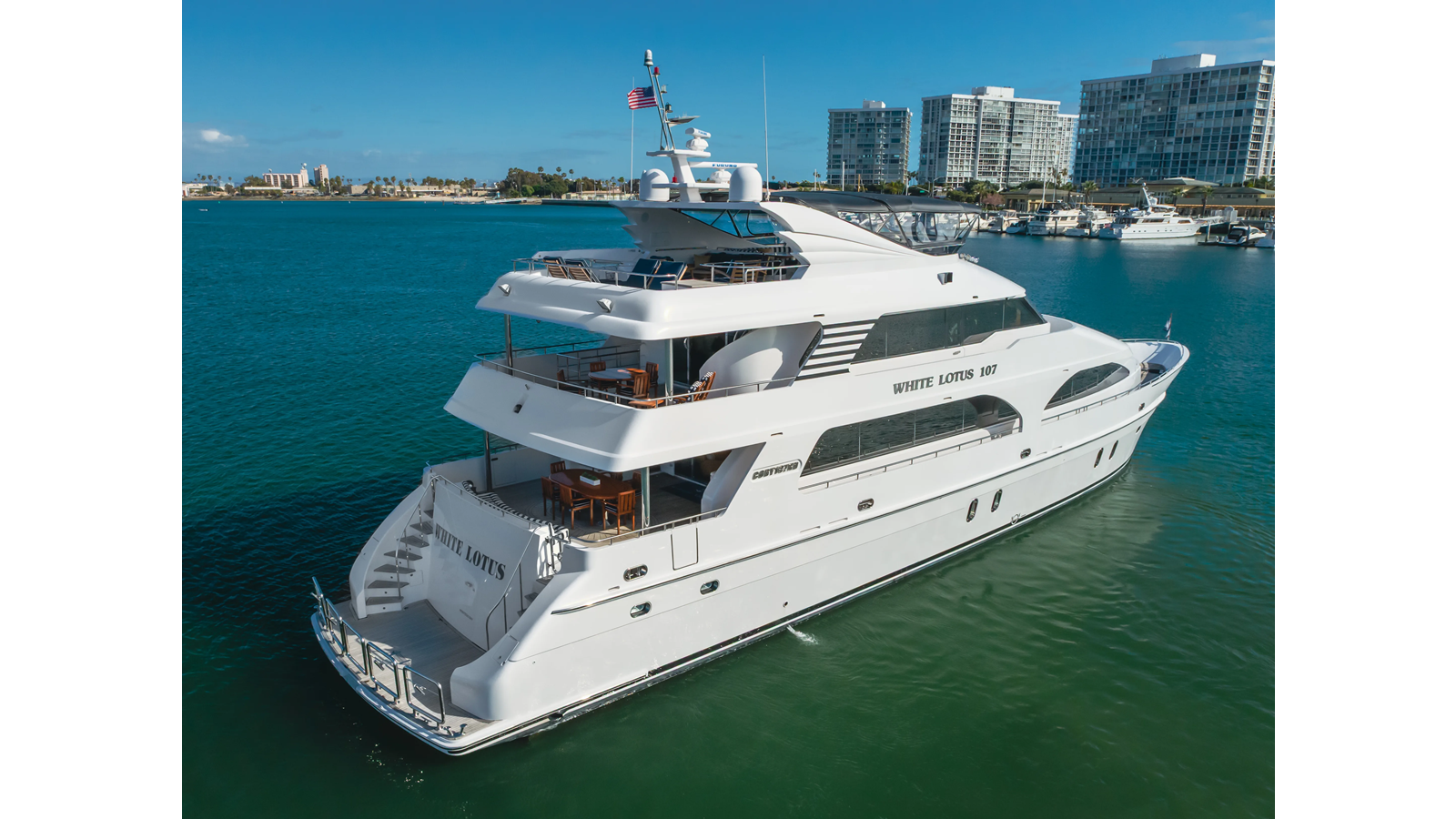 Yacht for sale is a 2011 PRESIDENT YACHTS 107' "White Lotus" Sterling Tri-Deck Motor Yacht in San Diego, California, USA.
