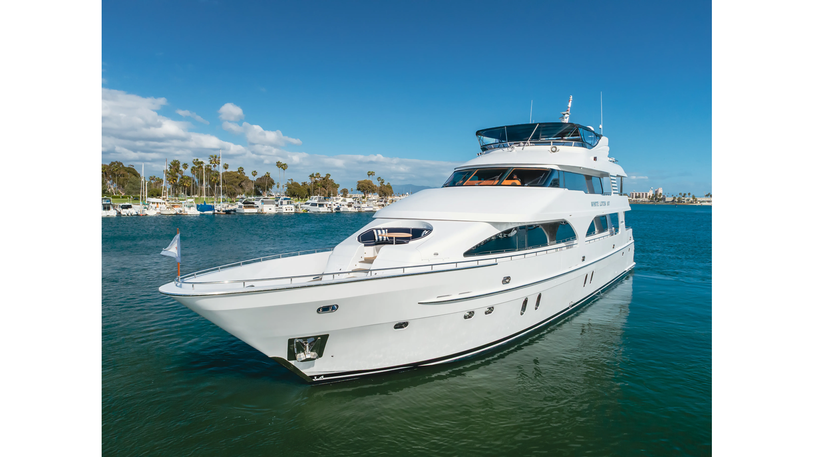 LLC Owned 6 Month refit in 2023 Including Paint, Galley, and Appliances Amazing Slip Available with view of Hotel Del Coronado Massive Flybridge with Sundeck and Upper Helm Station Twin Caterpillar C-32 Acert engines with only 1,775 hours Fully serviced hydraulics and updated air conditioning units Sleeps 10 guests and crew of 4, along with 6.5 baths Trac fin Stabilizers NOT AVAILABLE FOR SALE TO U.S. RESIDENTS WHILE IN U.S. WATERS.