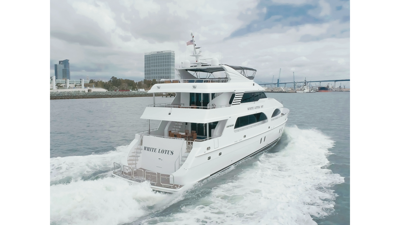 White Lotus is a 107-foot tri-deck motor yacht by President Yachts that has the benefit of a tasteful refit in 2023 featuring only 1775 engine hours on her powerful Cat C32's. Built for superior stability and comfort, the yacht features a cutting-edge navigation system with bow and stern thrusters, fin stabilizers, and Furuno electronics. The exterior has been repainted and shows magnificent. She features exceptional outdoor entertainment spaces, including two spacious aft decks, flybridge, and bow seating area–offering abundant outdoor spaces where guests can bask in the sun and savor breathtaking water views. Maintained with a captain, White Lotus offers upgraded systems and luxurious, modern interiors. The interior shows very light usage and the exquisite care that has been taken.