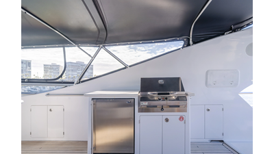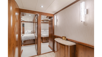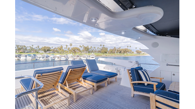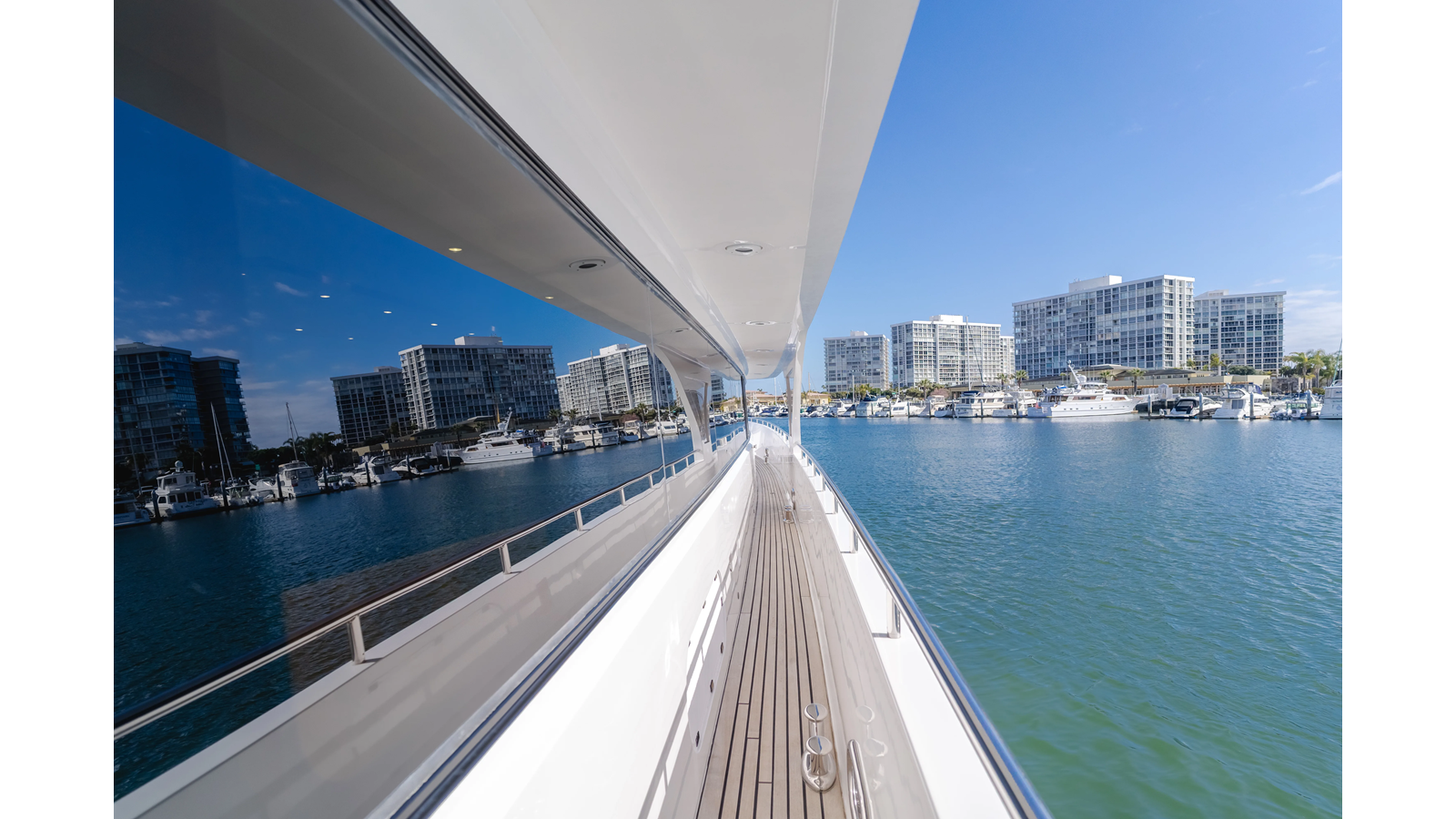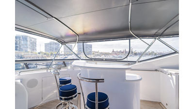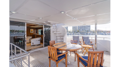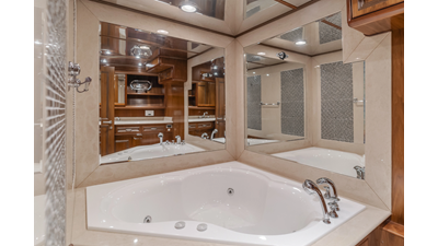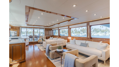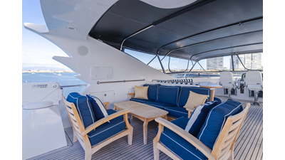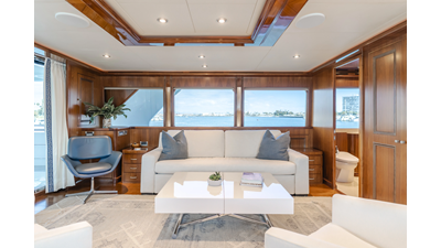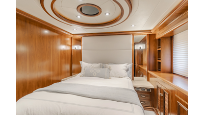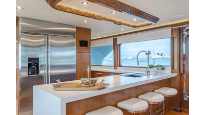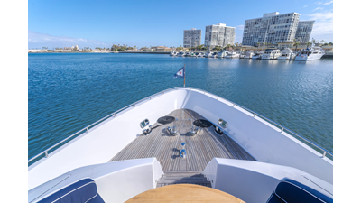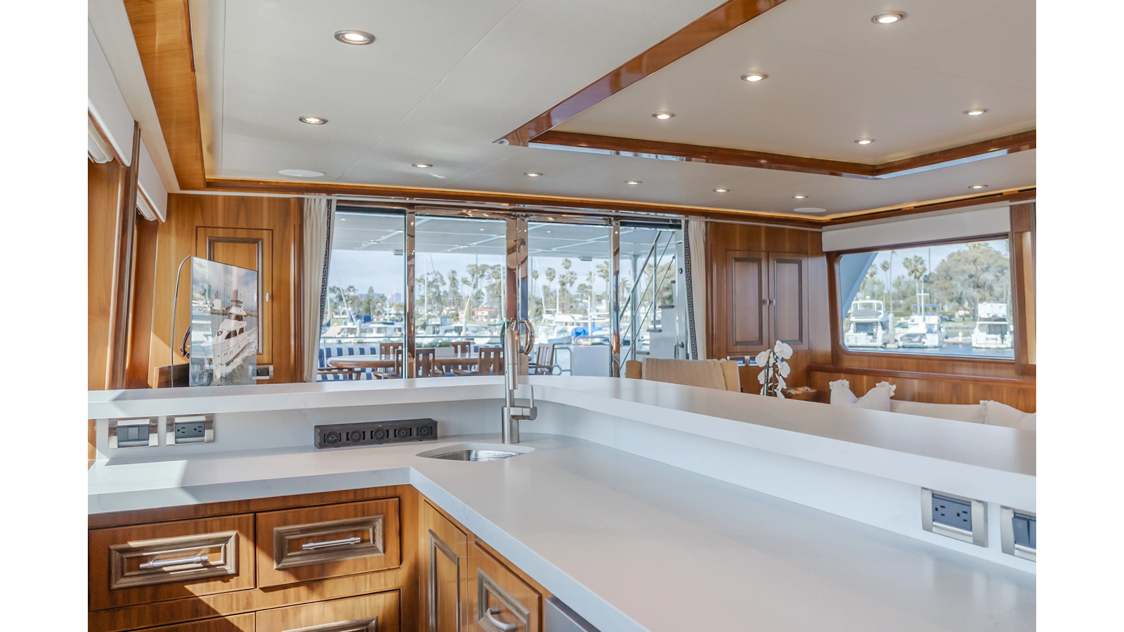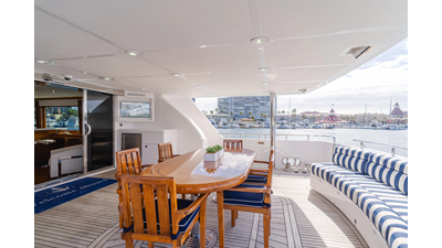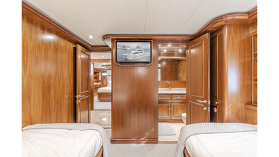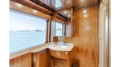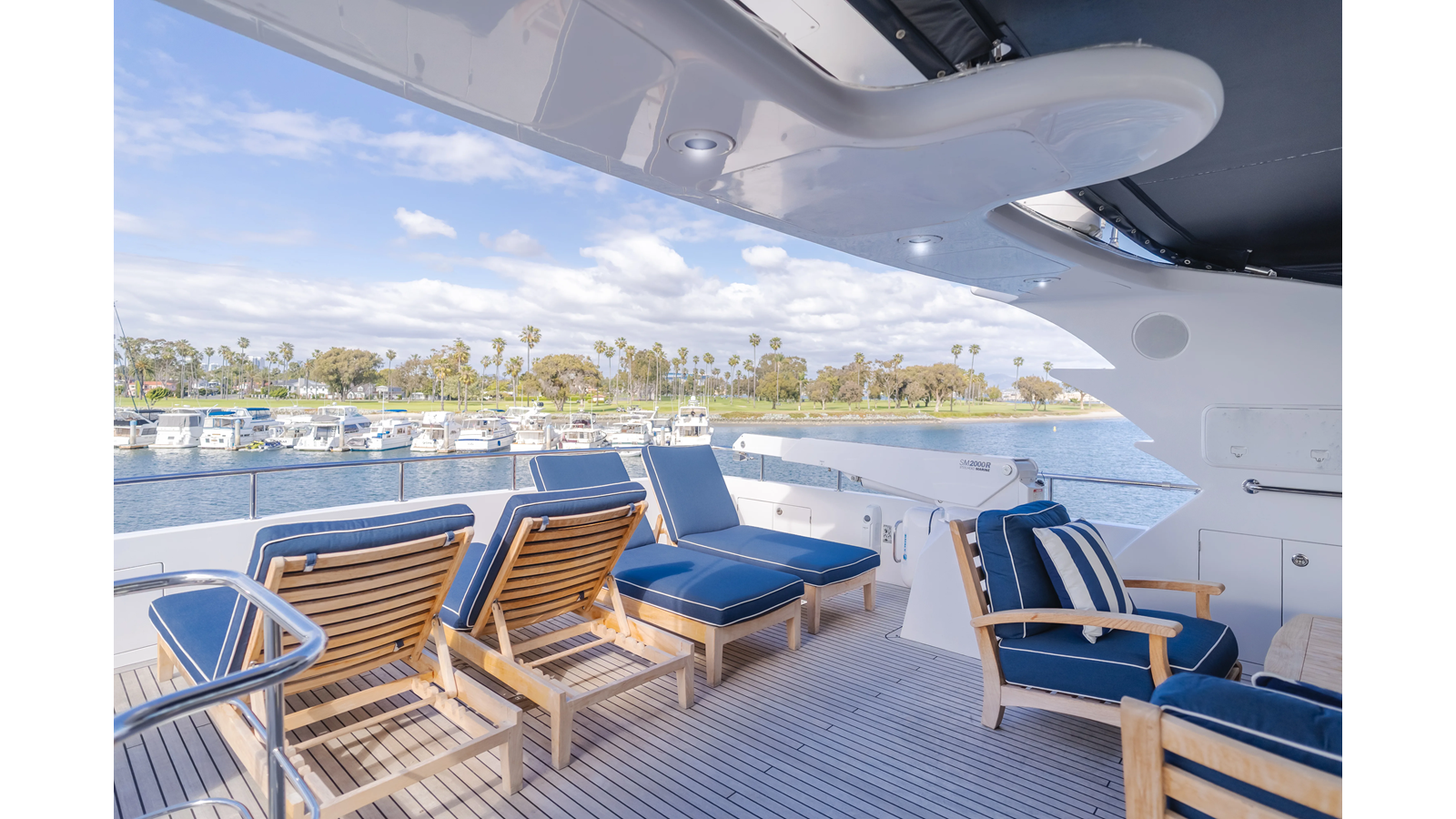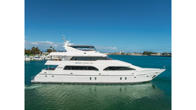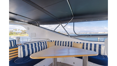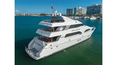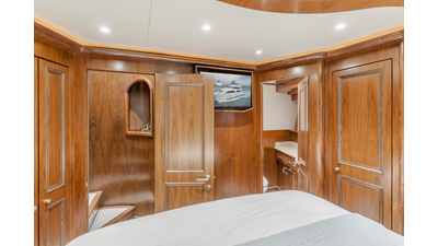 New paint on lower sides, bow, for deck, and brow, New kitchen, including counters, induction cooktop, Fisher & Paykel dishwasher, Miele, coffee station, cabinetry, Frankie sink, water faucets, Trash, matching dinnerware for 16, glasses, knives and forks, cutting knives and complete chefs kitchen counter stools (4) New Flooring throughout carpeting bedrooms, Wood Floor's salon library Teak decks all refinished New furniture salon, library New bar, including draw refrigeration, wine, rack, win glass holders shelving for tumblers quarts counter New upholstery and headboards in all bedrooms, new light fixtures Whole boat Sonos system, including flybridge, five, subwoofers, new ethernet through entire boat, Wi-Fi starlink satellite, new television monitors in master bedroom, salon, VIP, bedroom, guest queen, guest double birth, upper deck and cockpit Tender, 2018 Walker bay Yamaha outboard Closed in flybridge with Eisen glass New bottom job including bead, blasting back to original fiberglass with a new build up All hydraulics serviced new oil, including Stabilizers, American bow thruster including proportional, bow and stern thruster New freshwater pups, battery chargers Complete new bedding & new towels Serviced Air Conditioning new sea water pumps New Bow Seating Updated all electronics to current standards, including two new Furuno, Night vision camera Electric hunter Douglas blinds New Life rafts New flybridge furniture