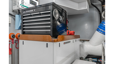 Double berth with storage under Counter with drawers and shelves Hanging locker (1) Private door to head S/S frame opening portlight (1) 24VDC or 120VAC lights 120VAC outlet (1) Air conditioning, 8,000 BTU