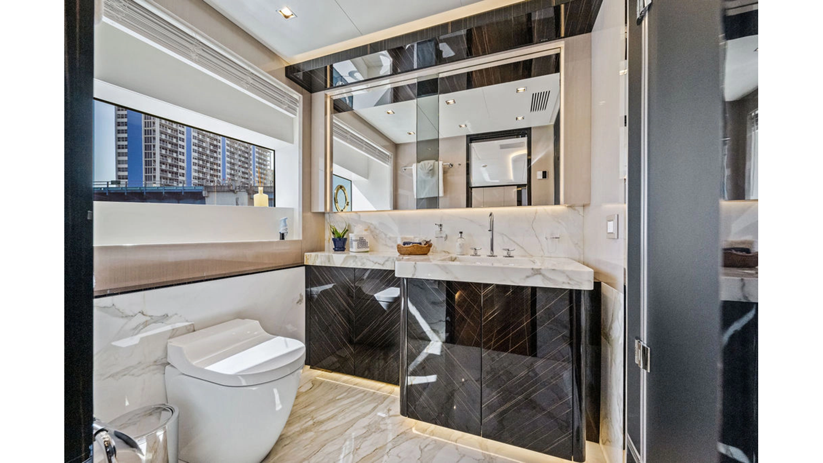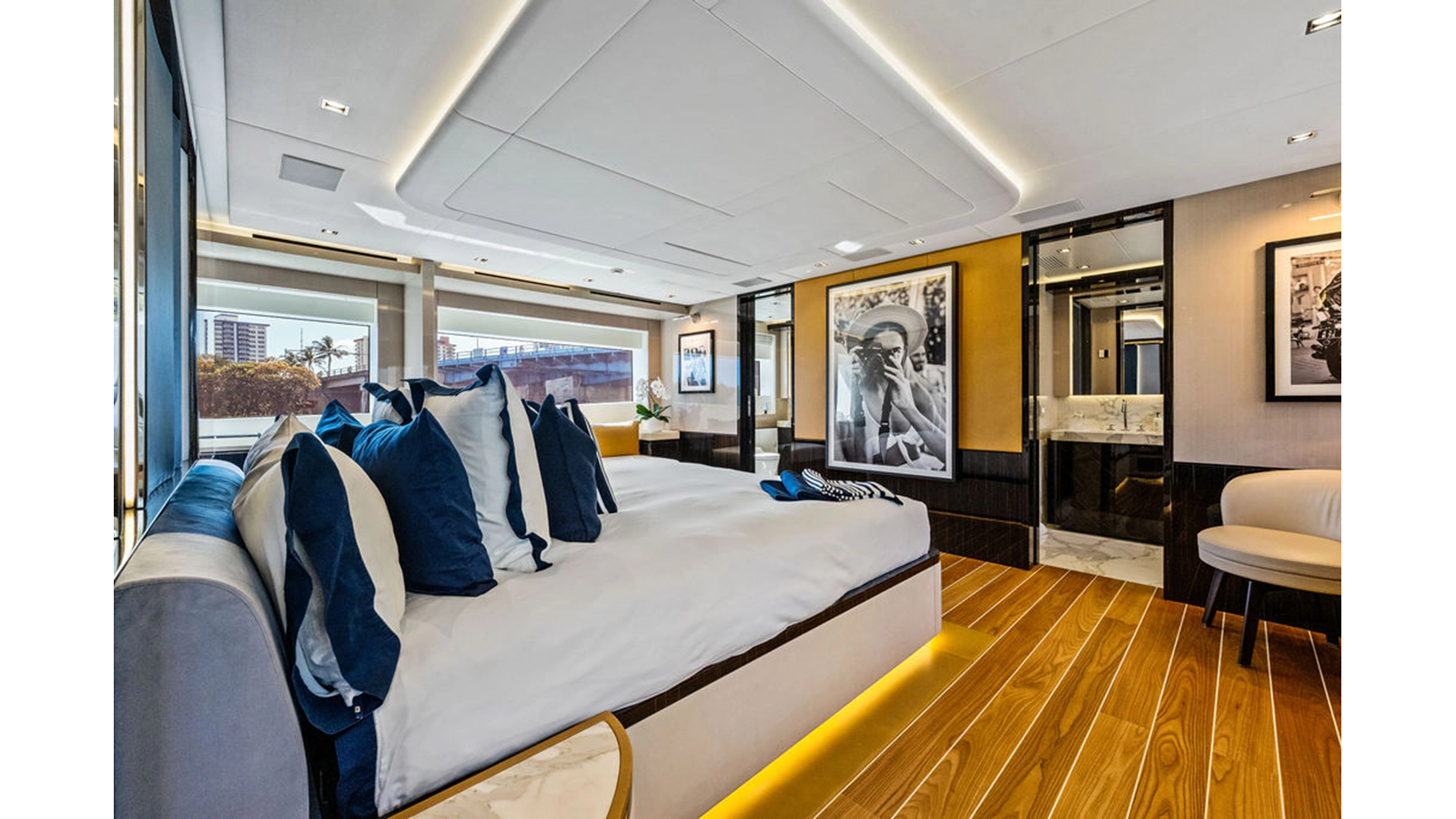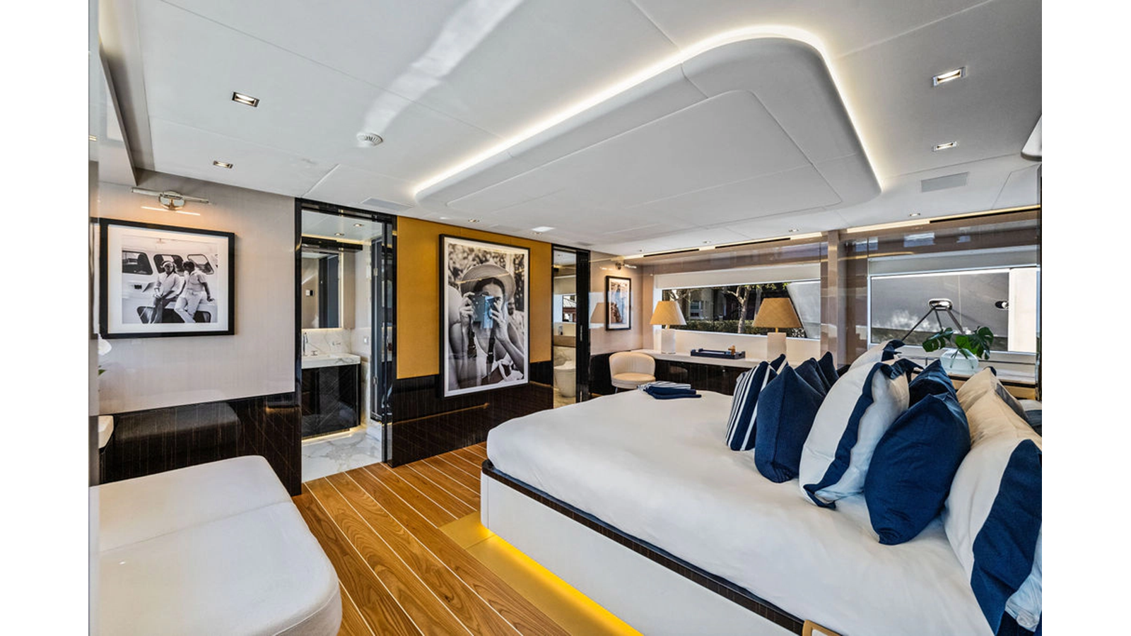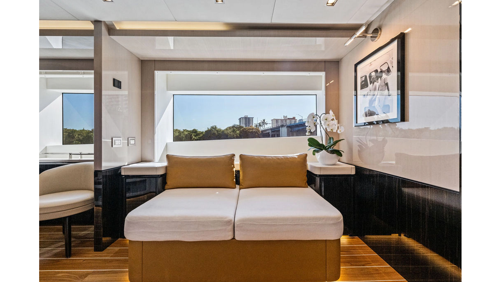 ARTEMIS, the 2021 Mangusta 33 GranSport, is one of the highest optioned 33 GranSports ever delivered. Originally commissioned as DOPAMINE for an experienced owner, she has well over €1m worth of upgrades including the beautiful interior decor by Alberto Mancini with upgraded marble & onyx throughout, upgraded galley, the master cabin that was completely reconfigured with a custom layout, increased ceiling heights both on the main & lower decks, as well as mechanical improvements such as increased sound proofing around the stabilizer systems to decrease noise in the guest accommodations.