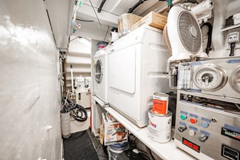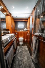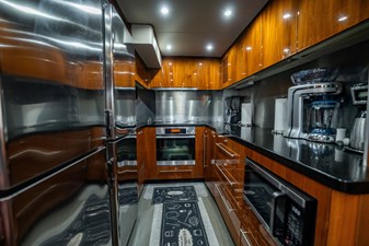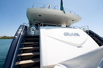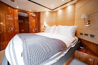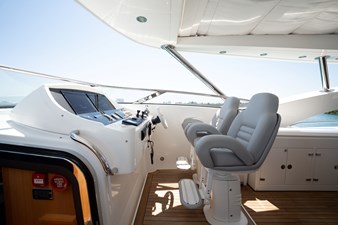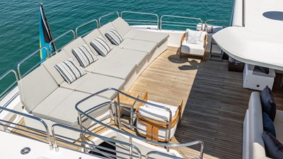 The flybridge is one of the yacht’s standout features, offering an impressive entertainment deck complete with a wet bar, sun pads, and a large dining area with panoramic views. Whether cruising the coast or anchored in a quiet harbor, this elevated space is ideal for enjoying the open air with friends and family.