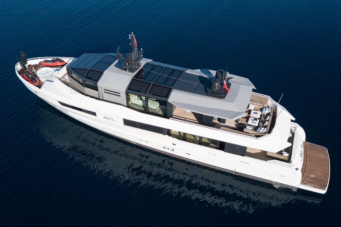 The 35m / 116′ Arcadia Yachts SUN offers a new way to experience the sea, enabling guests to enjoy the sea whilst respecting nature. With solar panels integrated into the superstructure which power utilities and services on-board, guests and sea life will appreciate complete tranquillity at anchor.