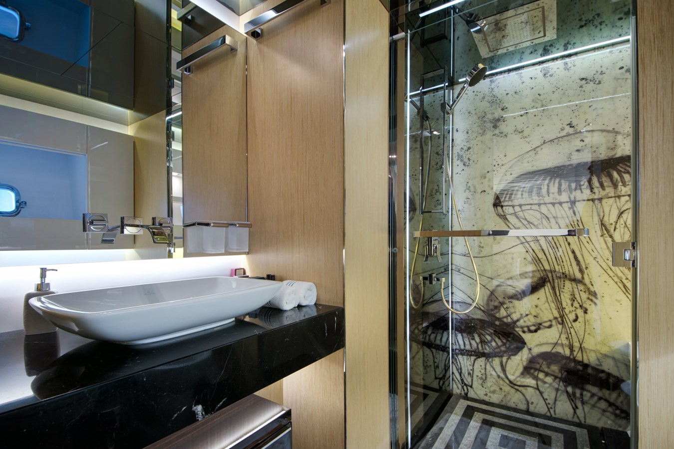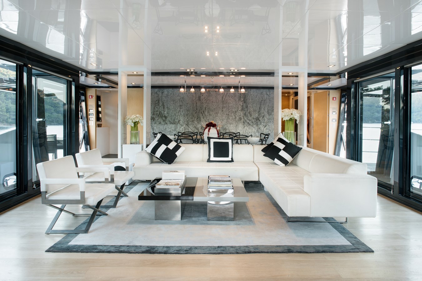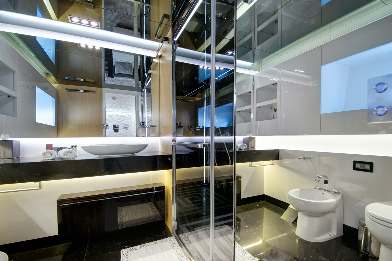 Welcoming you onboard is a spacious seating area leading into the open main salon and dining area, with floor length windows, large side openings and state of the art home cinema facilities.