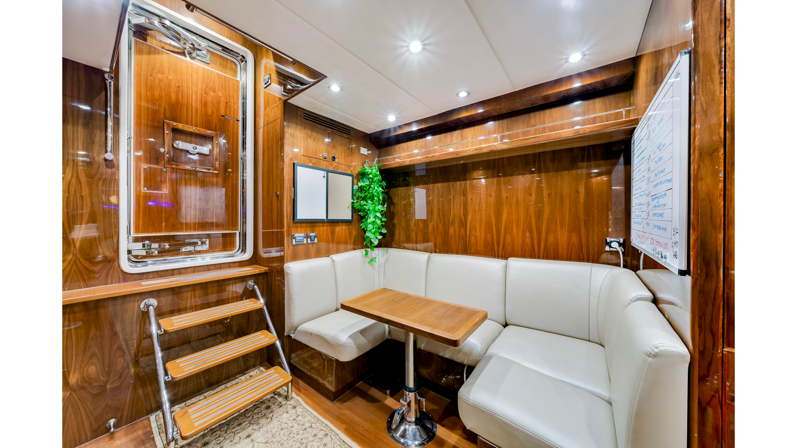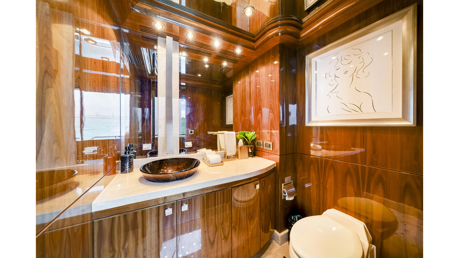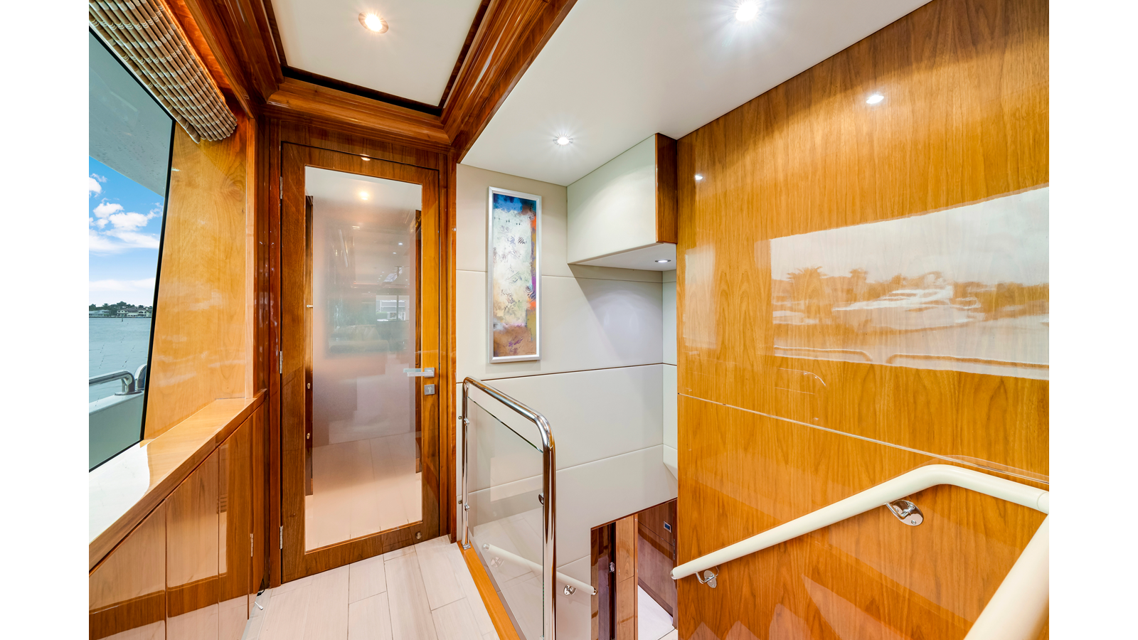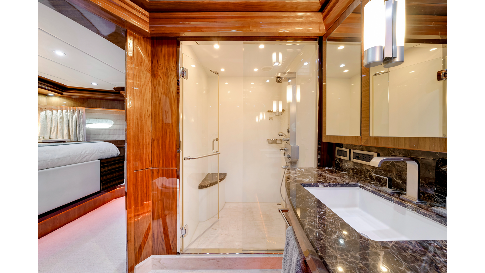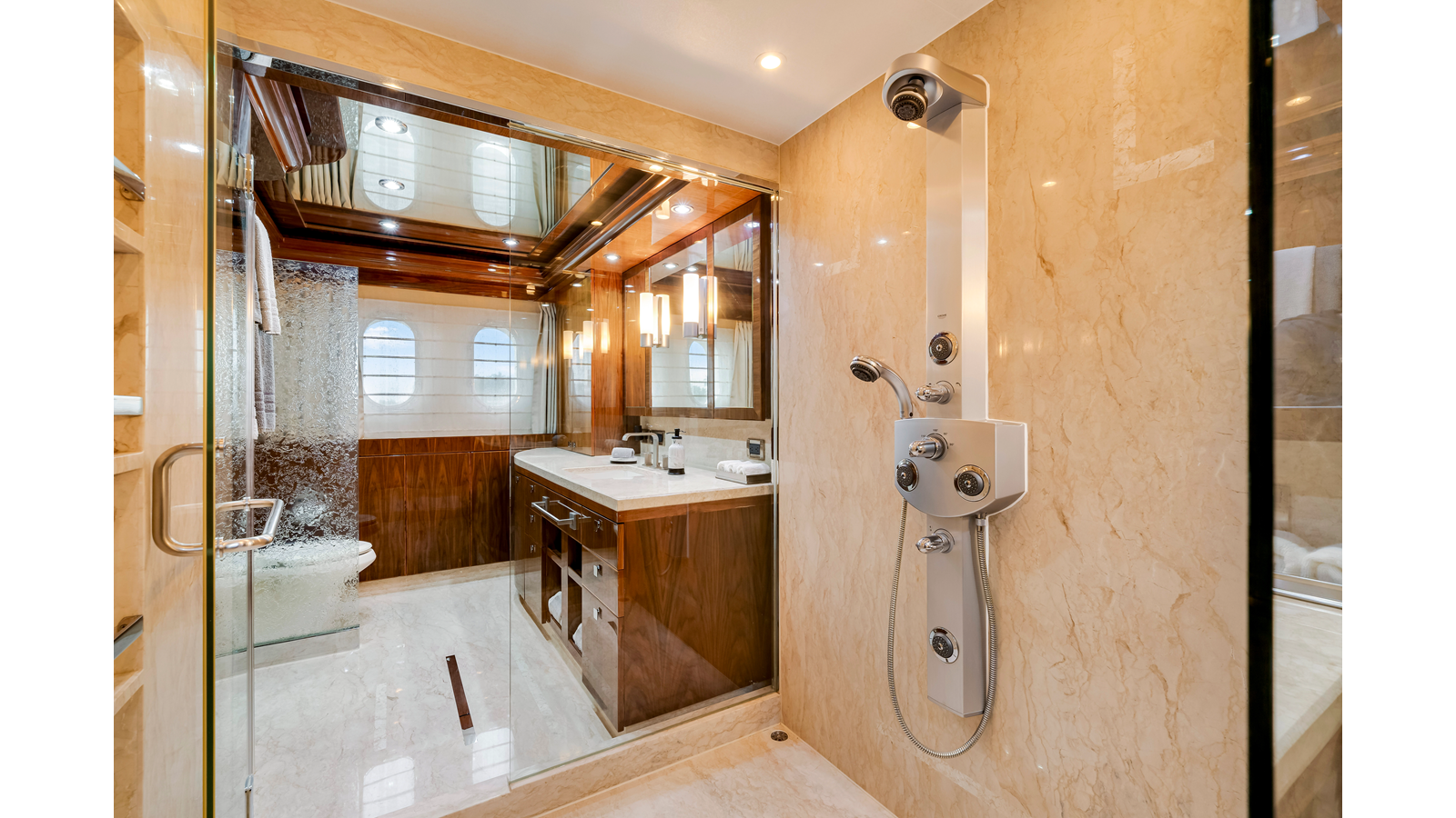 - Etched glass privacy doors port and starboard