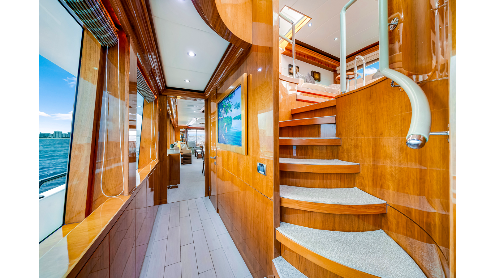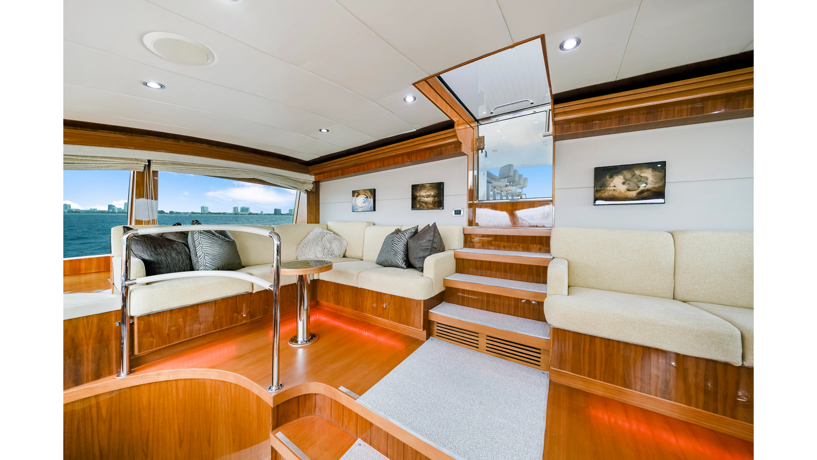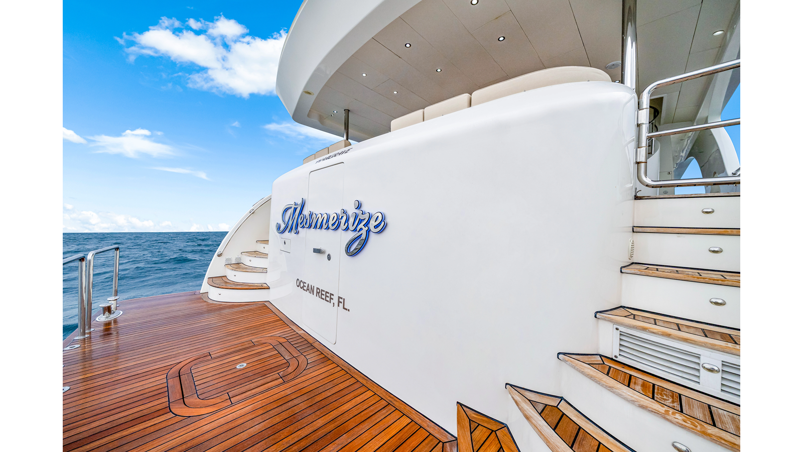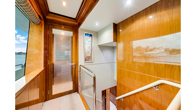 - Custom stairway for accessing flybridge from aft deck with storage