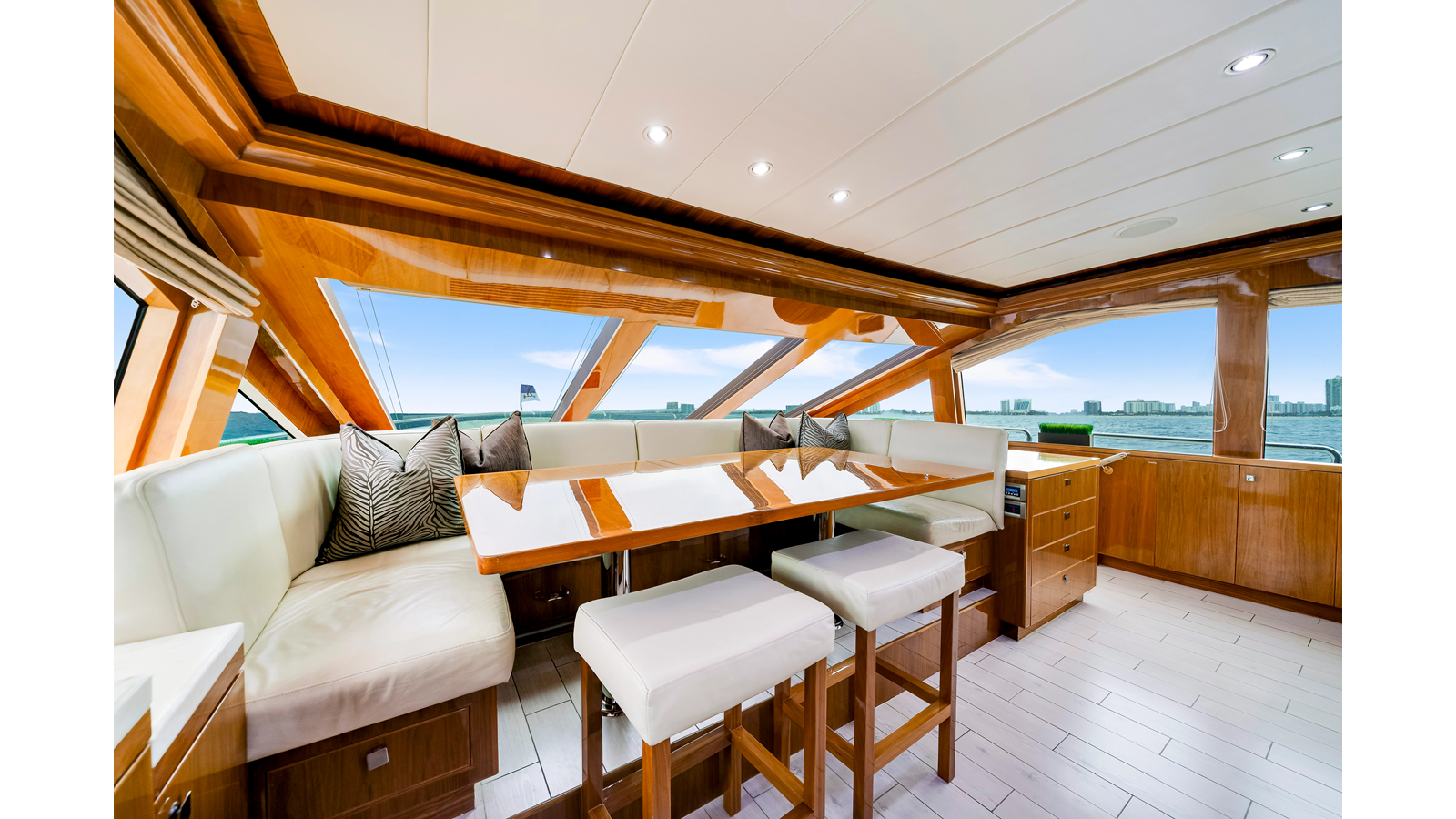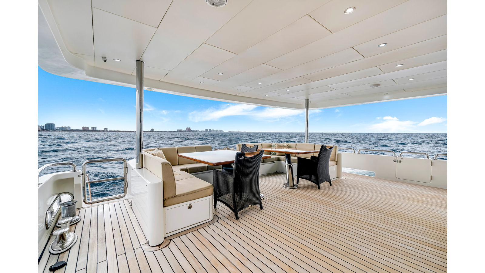 - Removable Teak Tabletop in between seats at Aft Deck and Flybridge