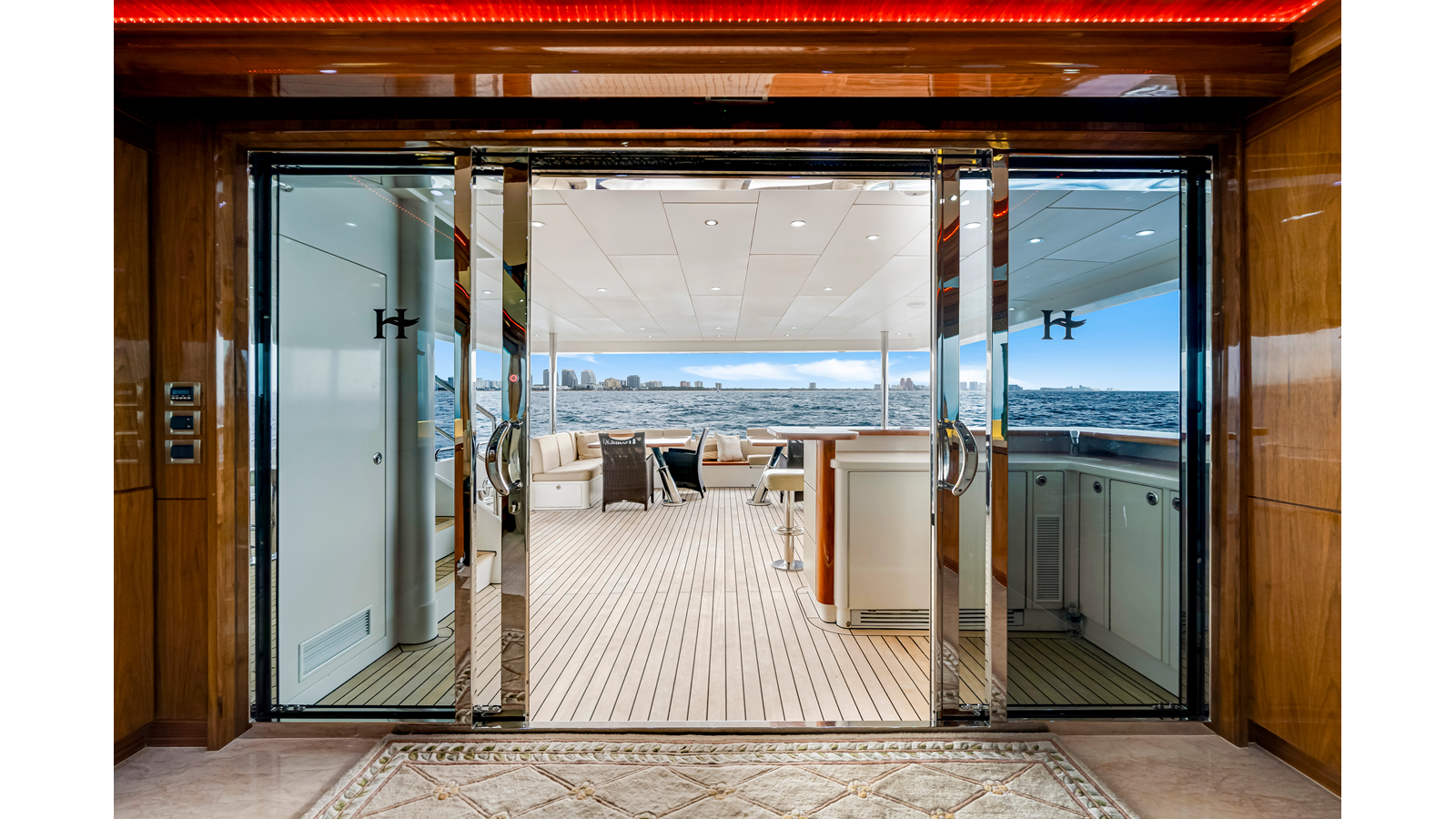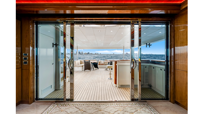 - Automatic/Manual Aft Deck door with stainless steel frame and tinted glass
