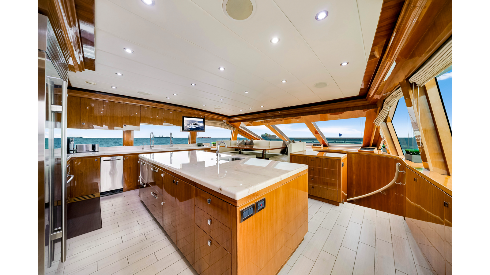 This layout is particularly popular with American owners who prefer the galley to be part of the social experience rather than separated as a purely crew workspace.