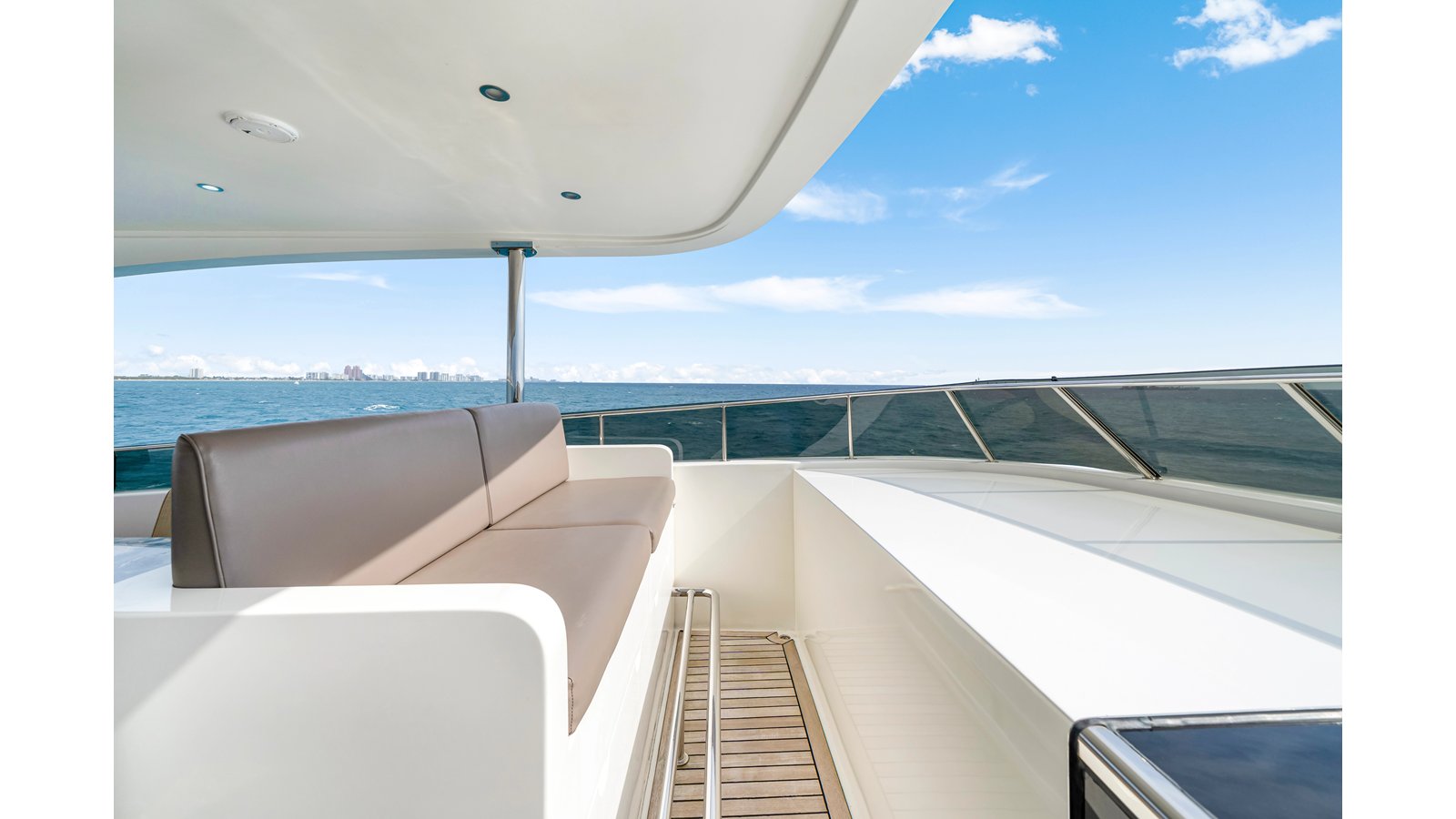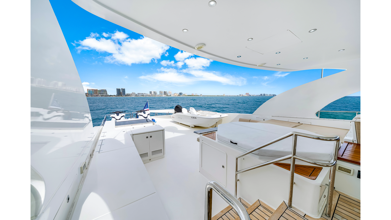 - Upgraded Flybridge, Aft Deck and Bathing Platform Teak Deck to 3” wide Teak Plank in place of standard