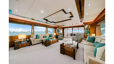 Offering nearly 5,000 square feet of interior living space , approximately 320 GT of interior volume , and 7’9” of headroom throughout the main living areas, the Hargrave 125’ Raised Pilothouse MESMERIZE offers the scale and comfort typically found on much larger yachts. Her layout includes six distinct social areas , allowing up to 60 guests to relax throughout, making her well suited for entertaining as well as extended cruising .