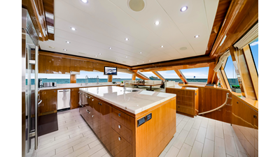 - Wet bar on Flybridge w/ 6 Stainless Steel bar stools