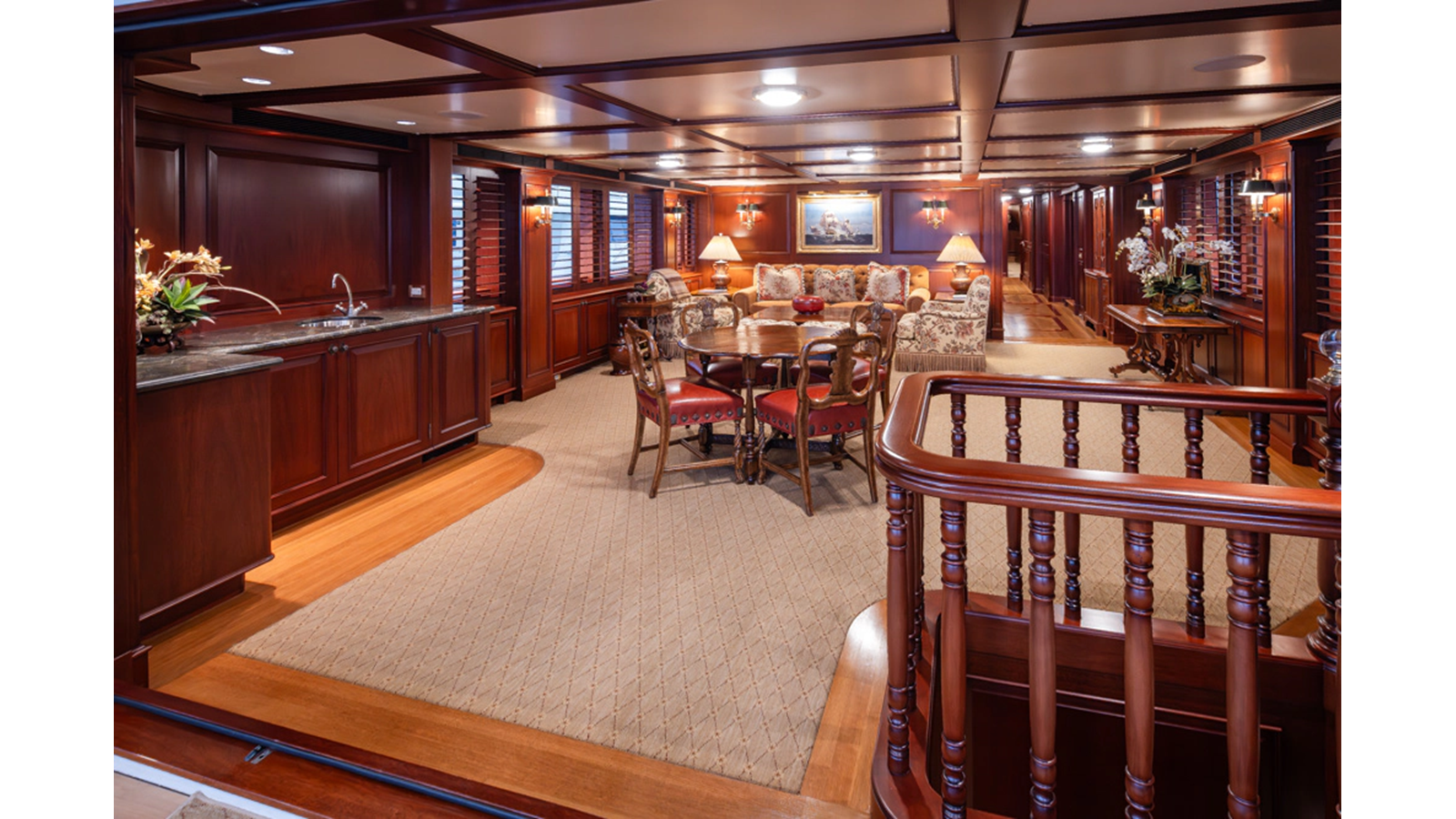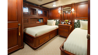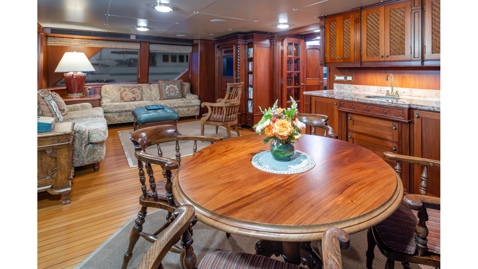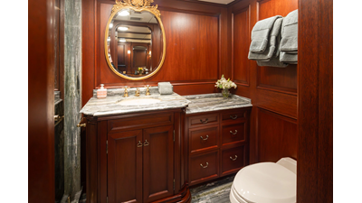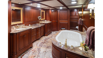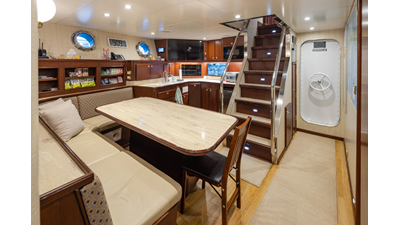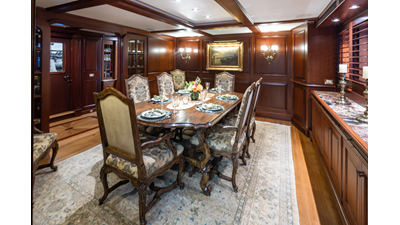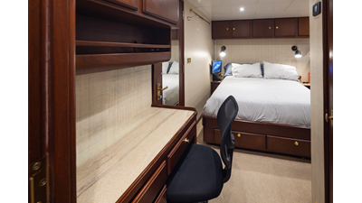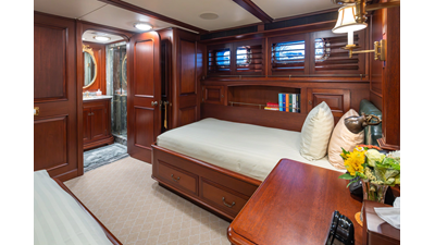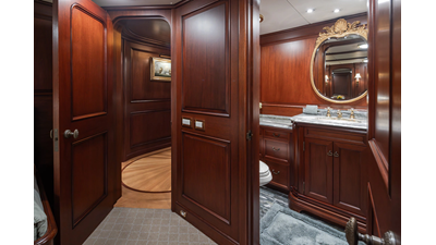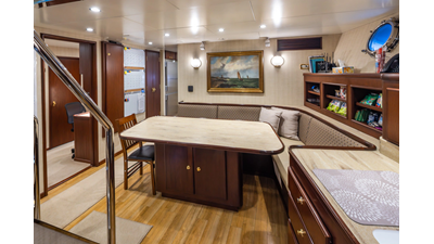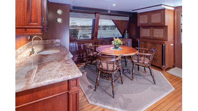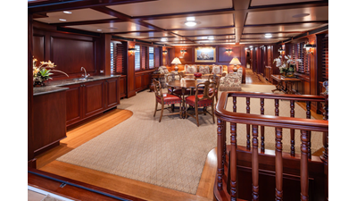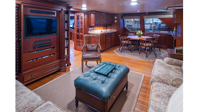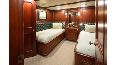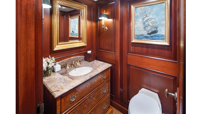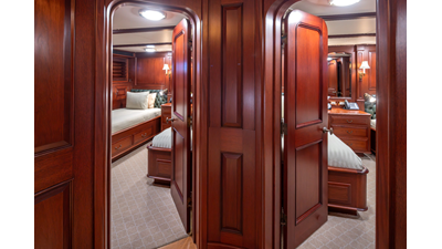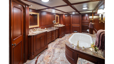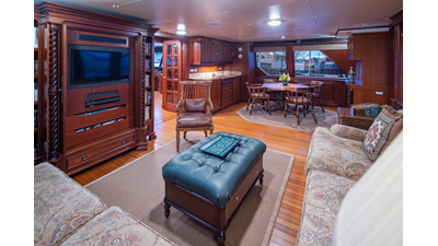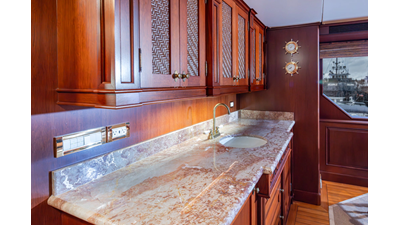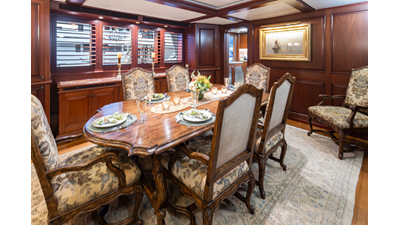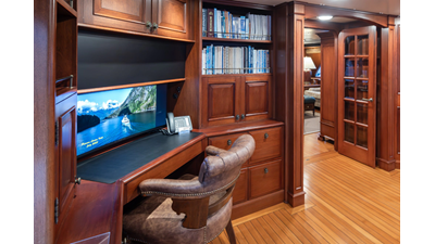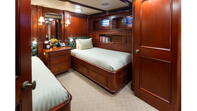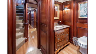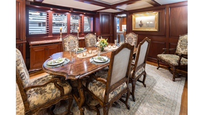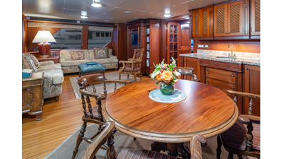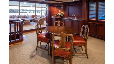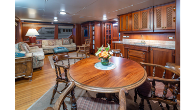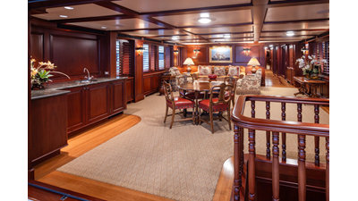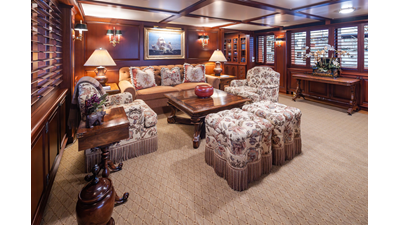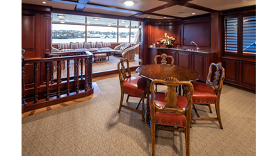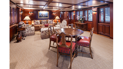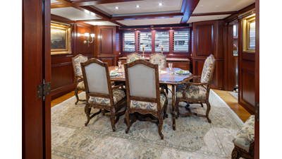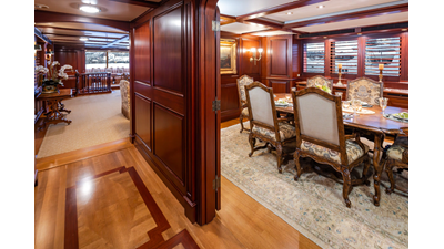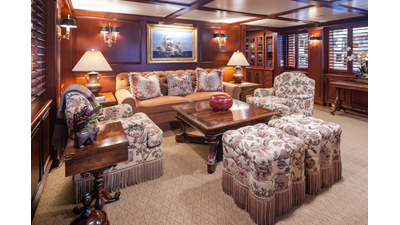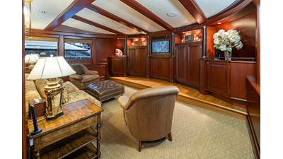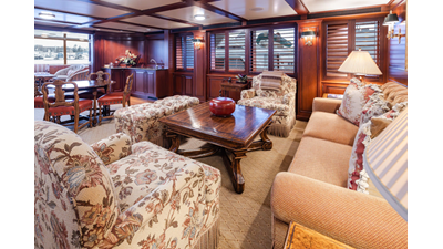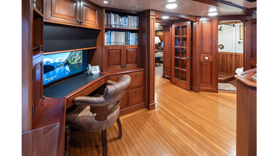 Uncommon in today's marketplace, MARLINDA was designed for relaxed, private cruising rather than large charter-style gatherings. Her beautifully crafted mahogany interior showcases timeless American worksmanship throughout. Guests are welcomed aboard via the main deck aft into a gracious salon featuring a bar to port - ideal for entertaining. Forward lies the formal dining area with convenient access to a spacious, professionally designed galley on the port side. To starboard forward is a day head and an extensive library, offering flexibility to be converted into an on-deck owner's suite if desired. Below deck, accommodations for six guests in two generous staterooms, along with a full-beam master suite.