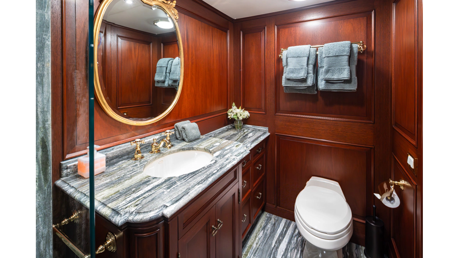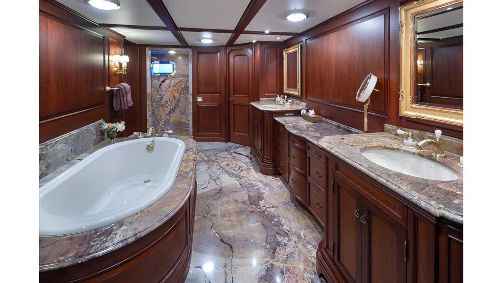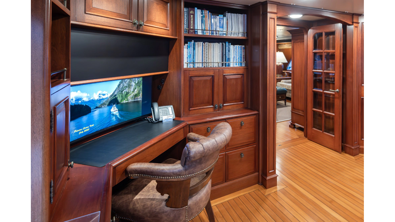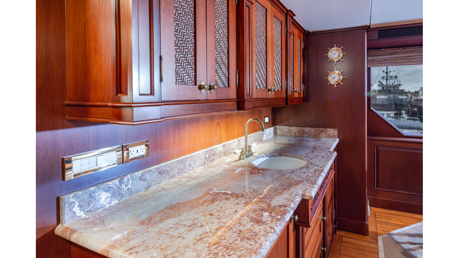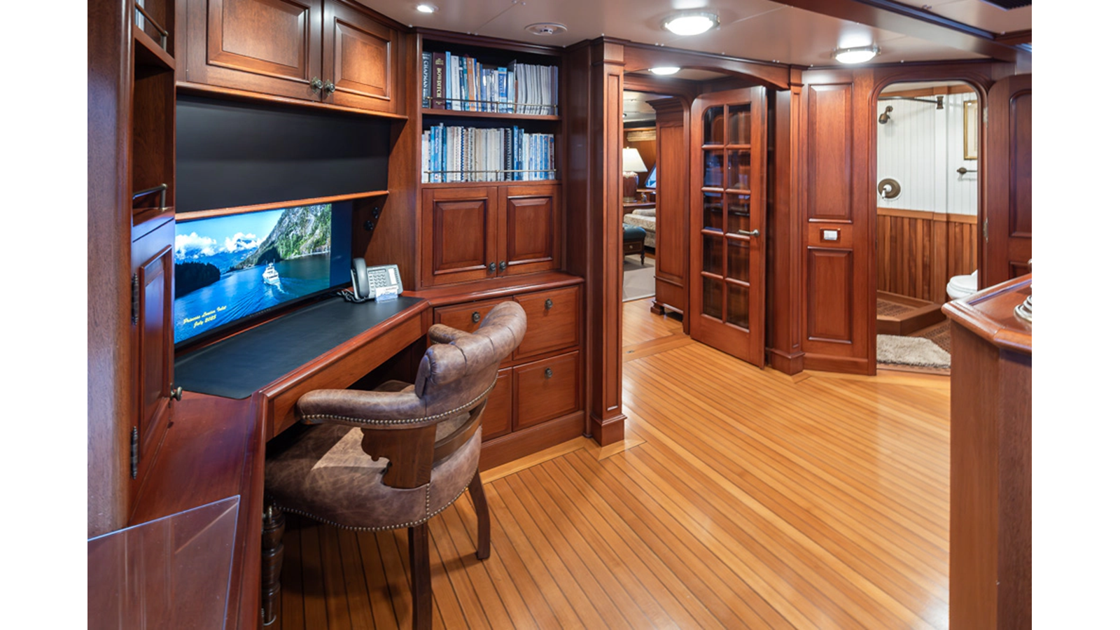 Uncommon in today's marketplace, MARLINDA was designed for relaxed, private cruising rather than large charter-style gatherings. Her beautifully crafted mahogany interior showcases timeless American worksmanship throughout. Guests are welcomed aboard via the main deck aft into a gracious salon featuring a bar to port - ideal for entertaining. Forward lies the formal dining area with convenient access to a spacious, professionally designed galley on the port side. To starboard forward is a day head and an extensive library, offering flexibility to be converted into an on-deck owner's suite if desired. Below deck, accommodations for six guests in two generous staterooms, along with a full-beam master suite.