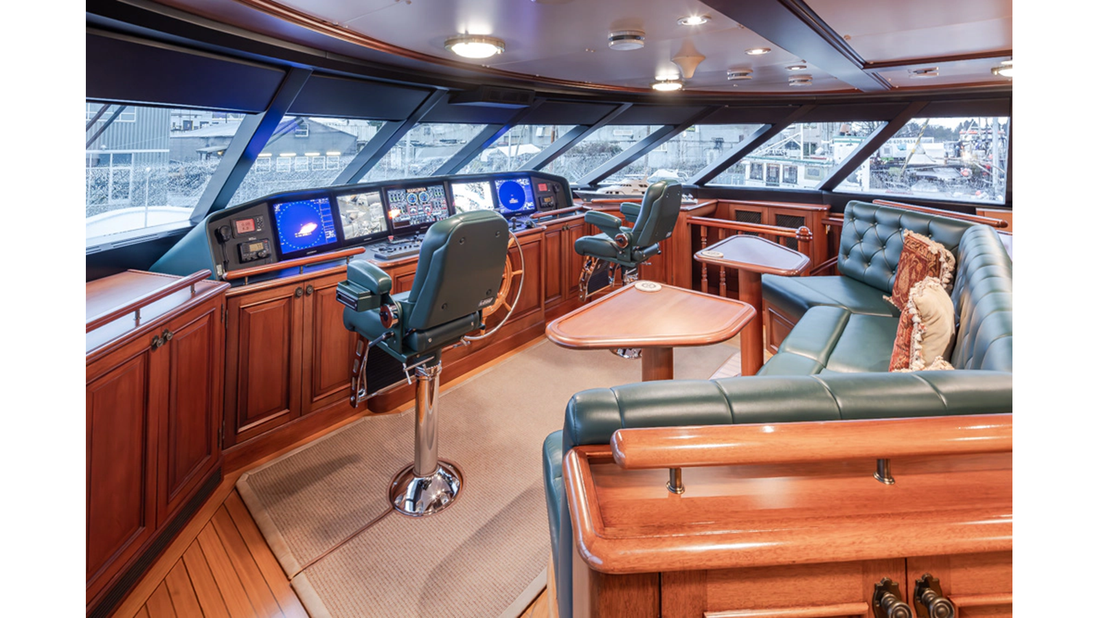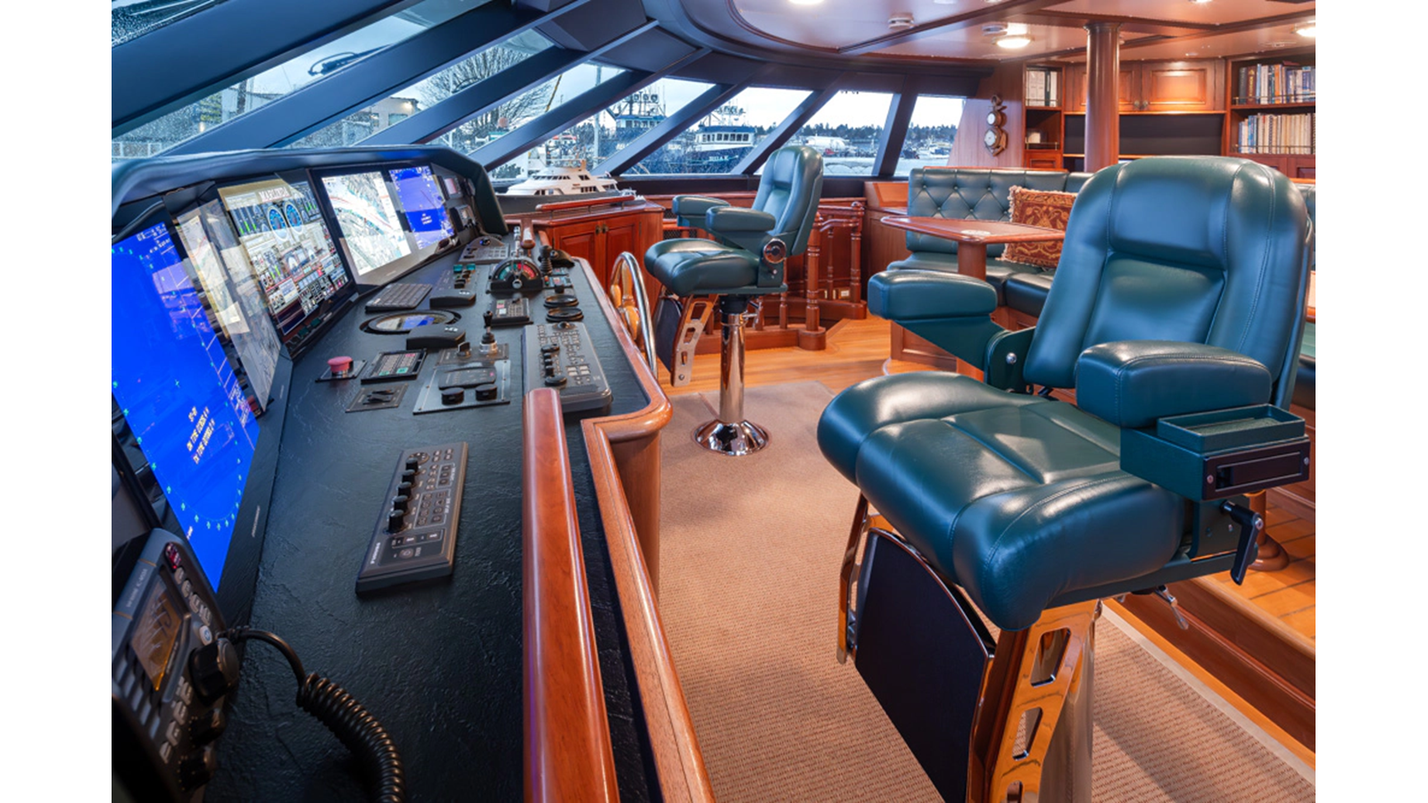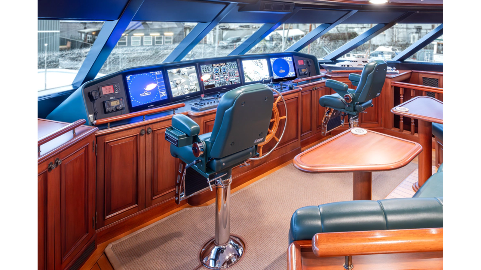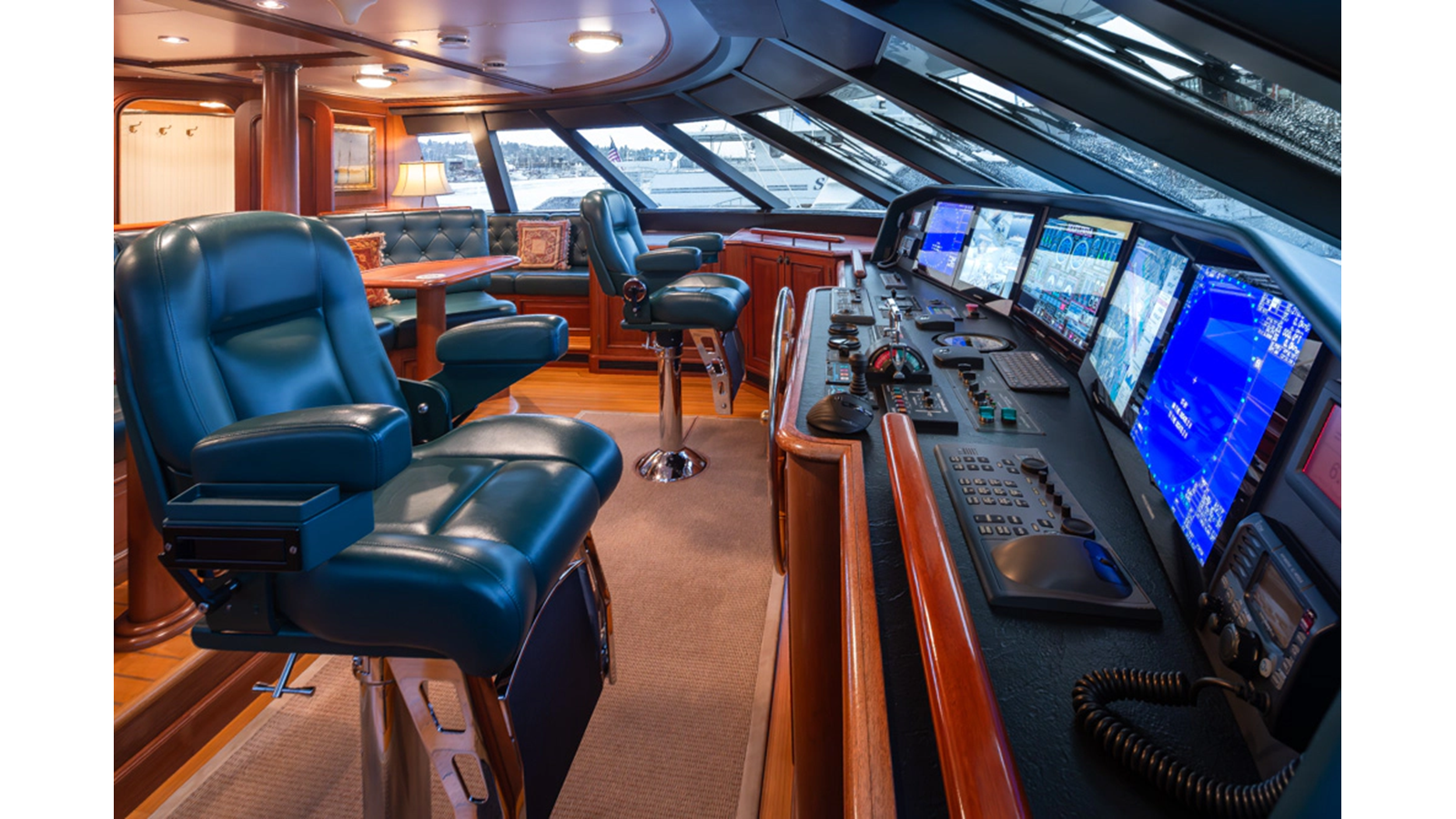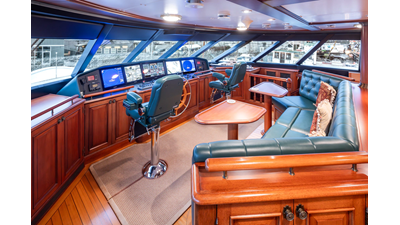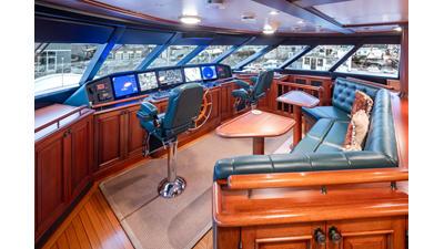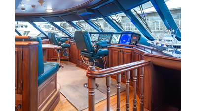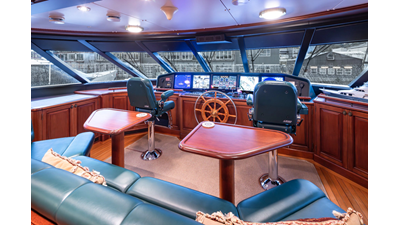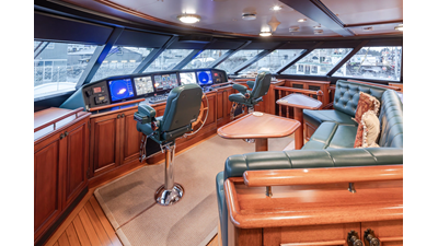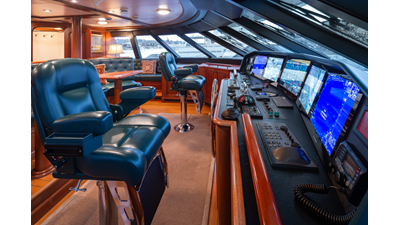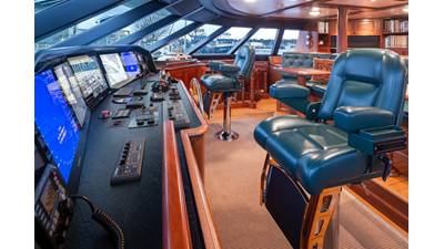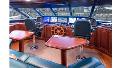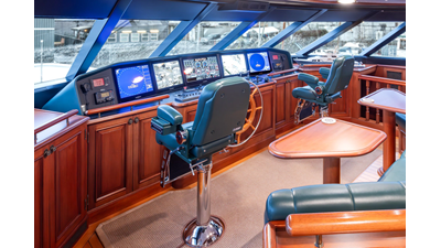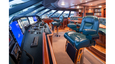 - Helm Station with 19" Green Marine display, Kahlenburg Horn Controls, Ham/Jet RAI, Searchlight controls, (2) B&G H3000, Thruster controls, Kobelt controls, ComNav211 rudder and autopilot controls, Naiad Multisea II Controls