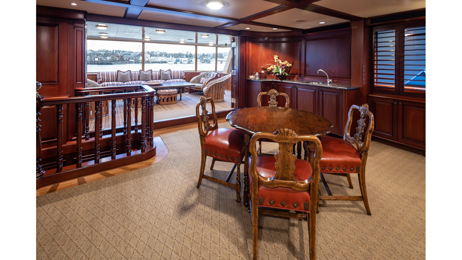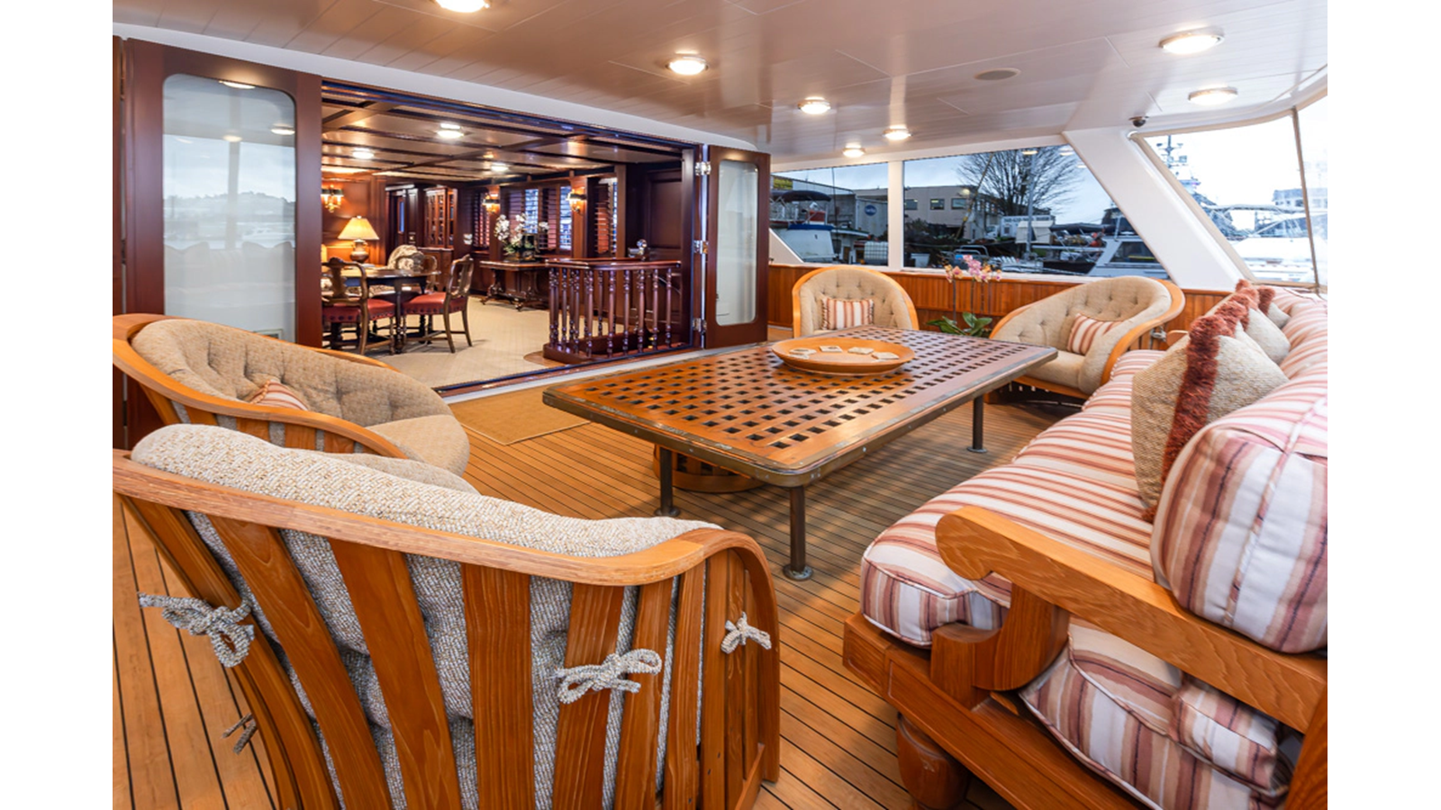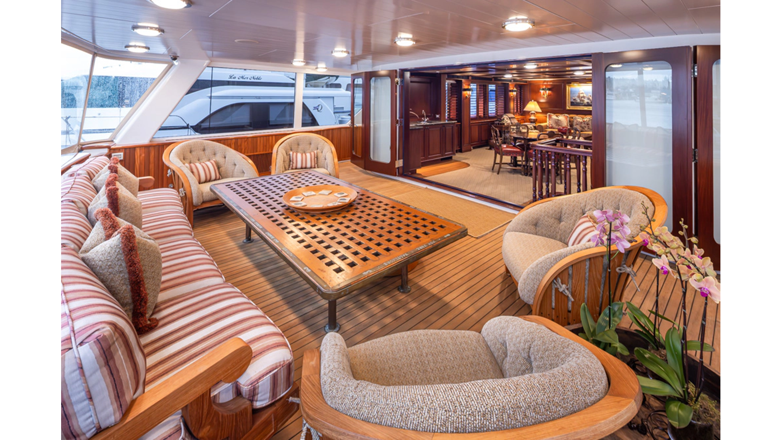 - Teak Boatdeck aft of Skylounge and stairs to Flybridge
