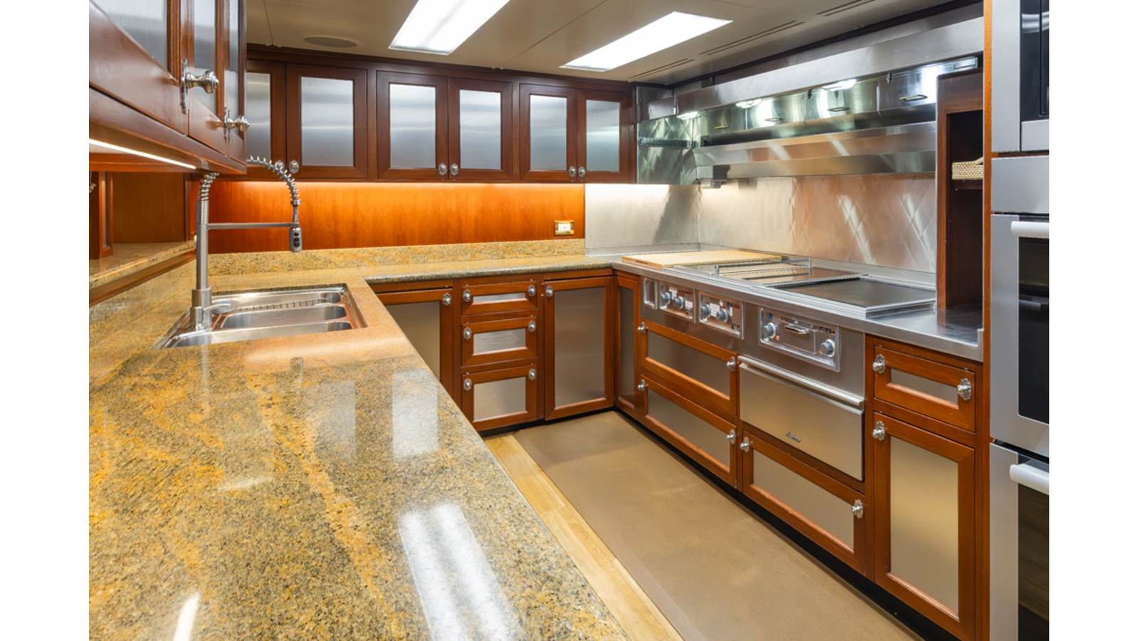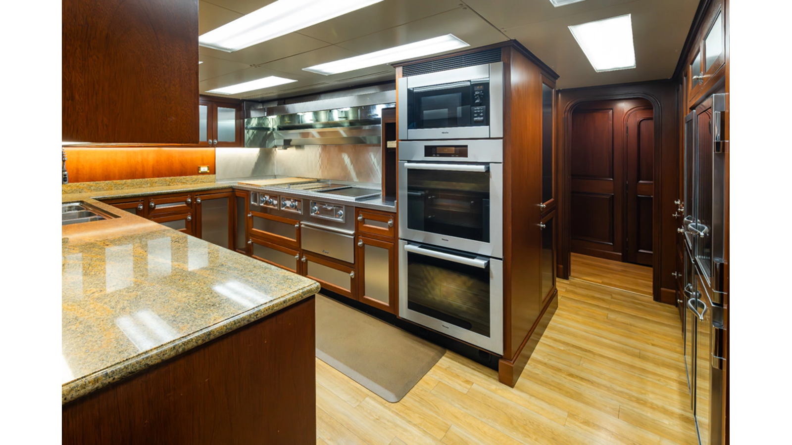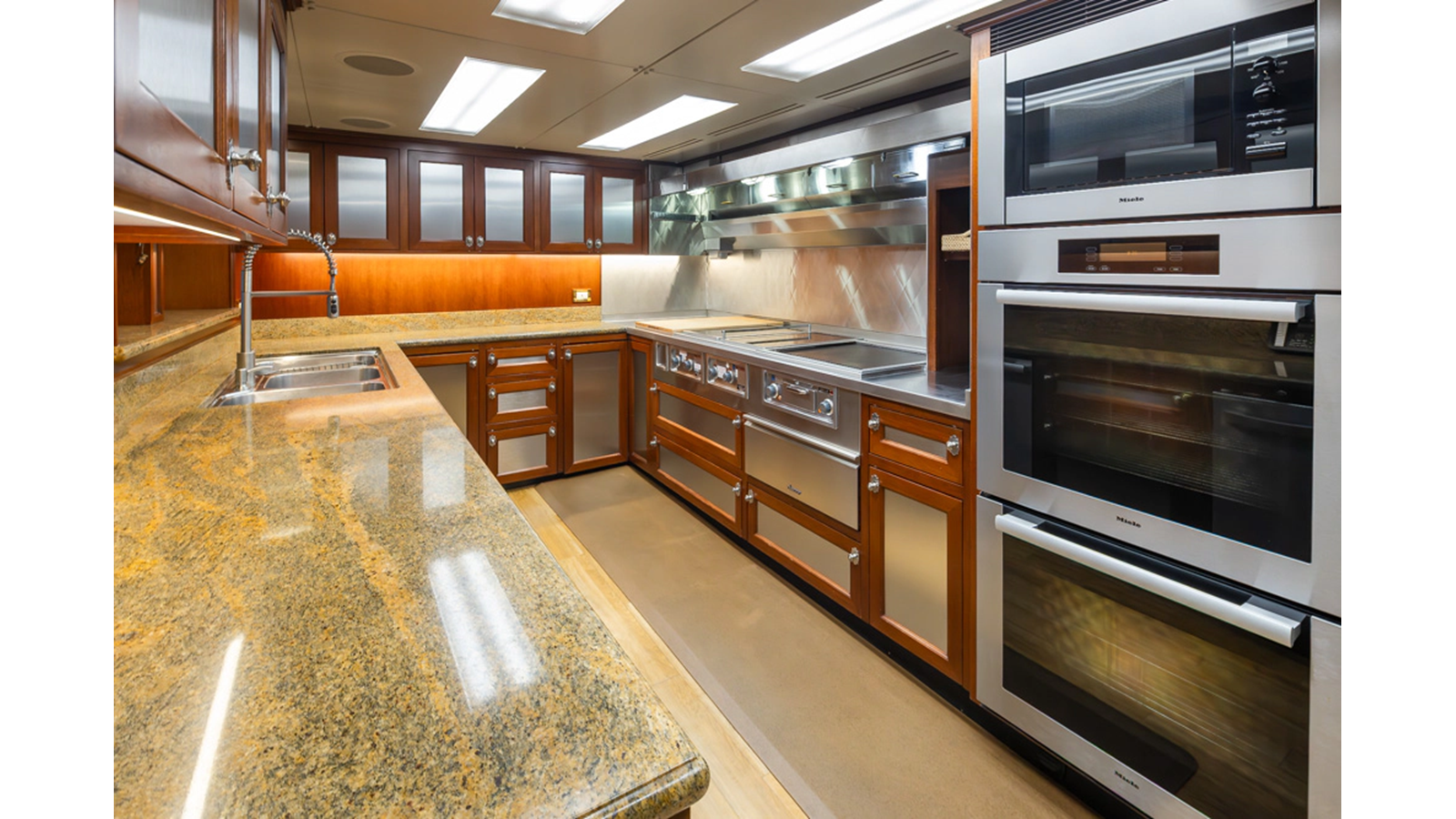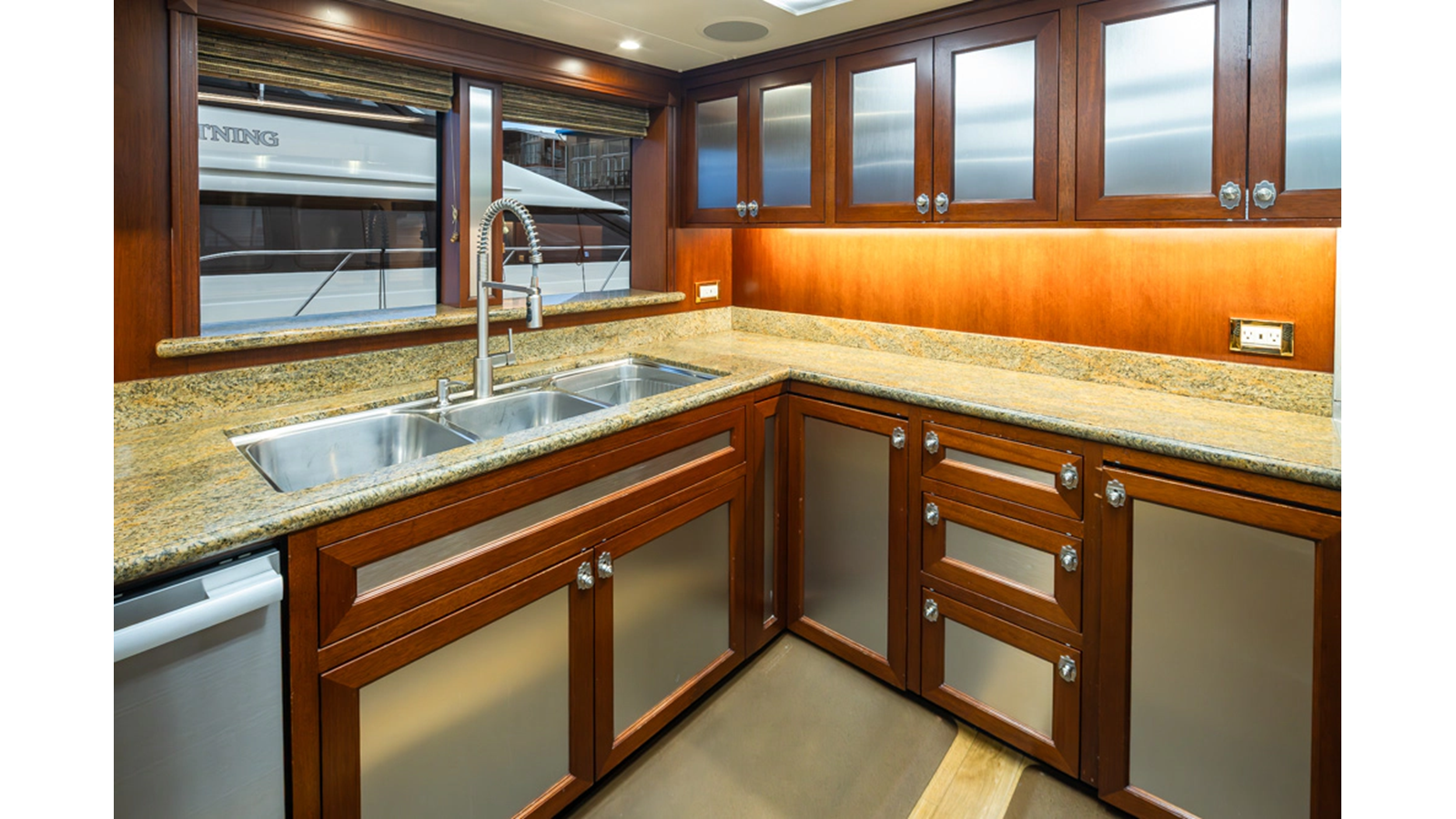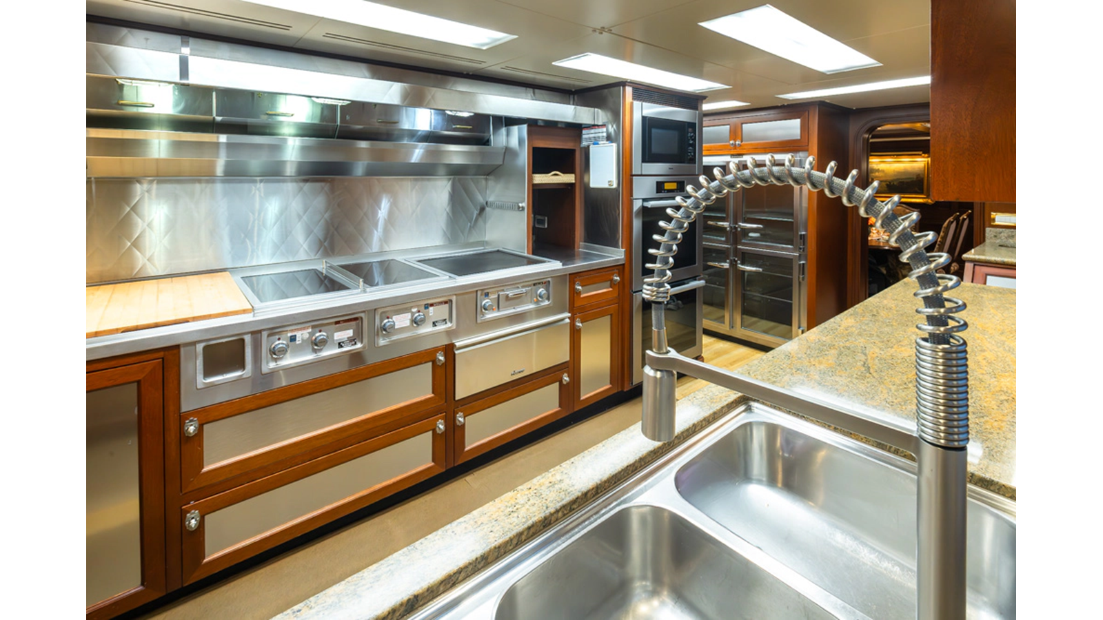 - Quad-folding high gloss mahogany doors leading to cali-deck