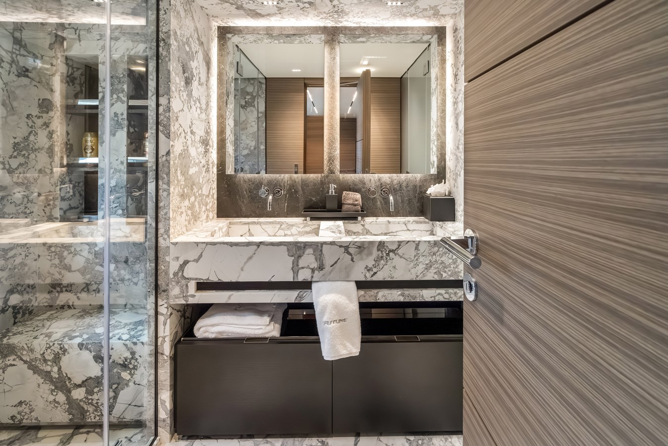 - Invisible Black Marble in Bathrooms (Master and Lower Deck Cabins)- Shower, WC Areas, Floors, Portals, and Washbasin Tops