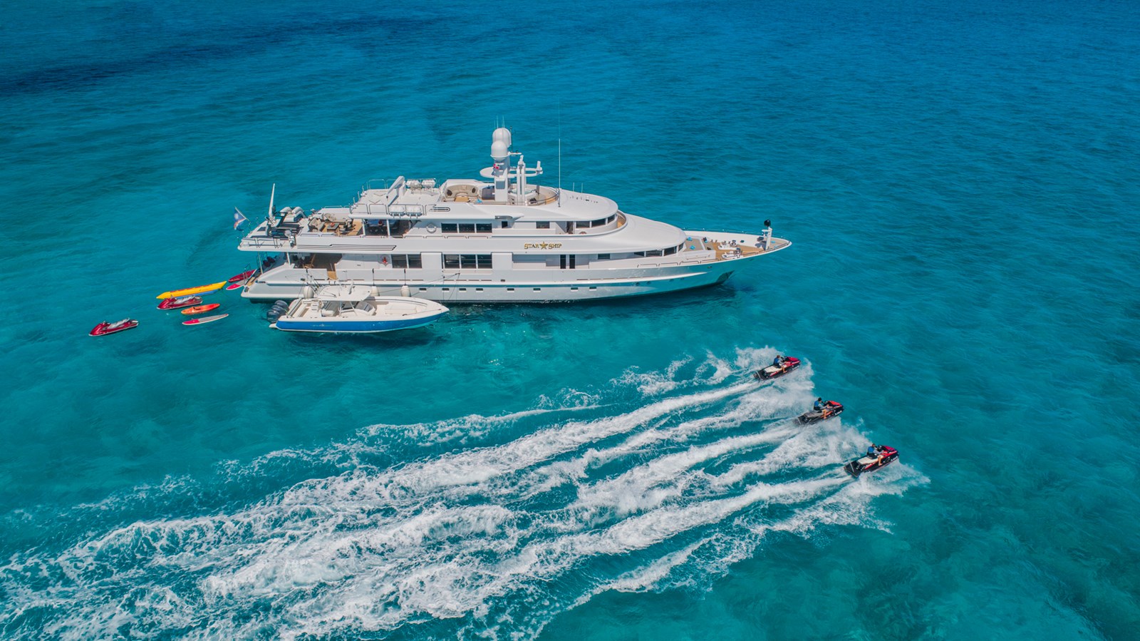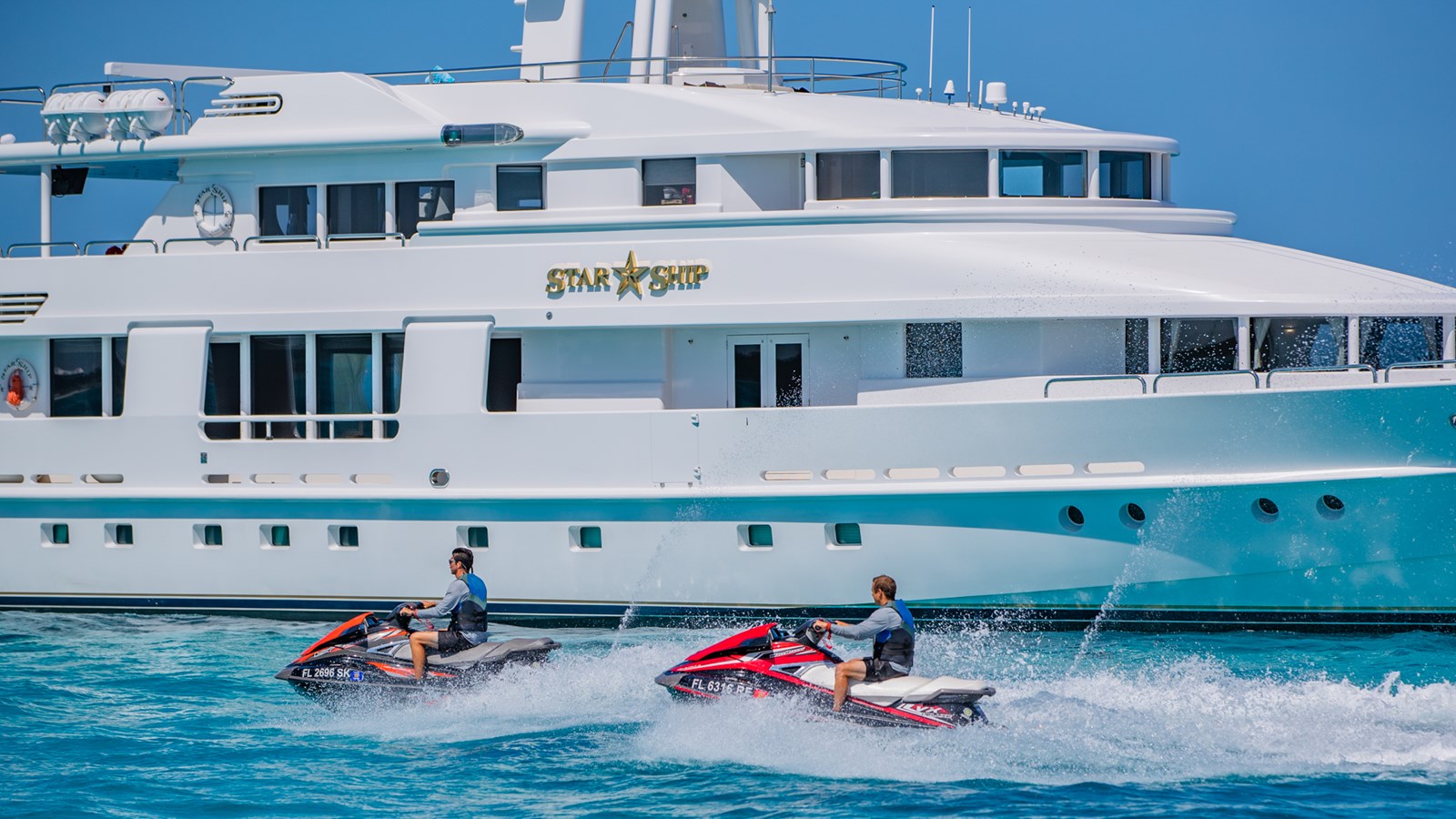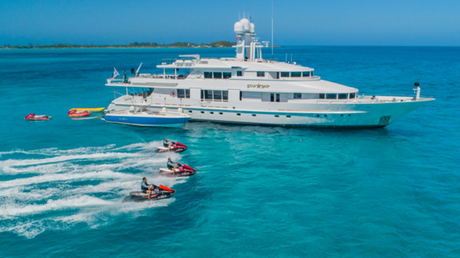 Powered by 2x MTU diesel engines, STARSHIP delivers reliable performance and smooth cruising. The yacht’s spacious decks and social areas are ideal for entertaining or relaxing, while her onboard amenities offer air conditioning, Wi-Fi, deck Jacuzzi, gym, and stabilizers at anchor. STARSHIP is also fully equipped for water sports, including tenders, jet skis, sailboards, water skis, and diving equipment.