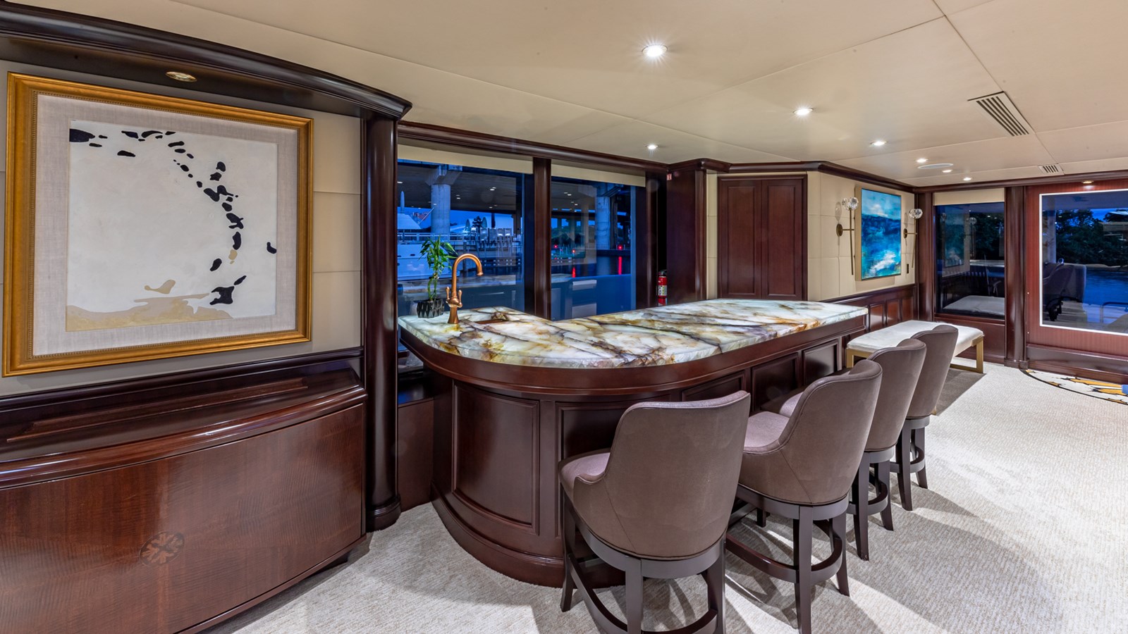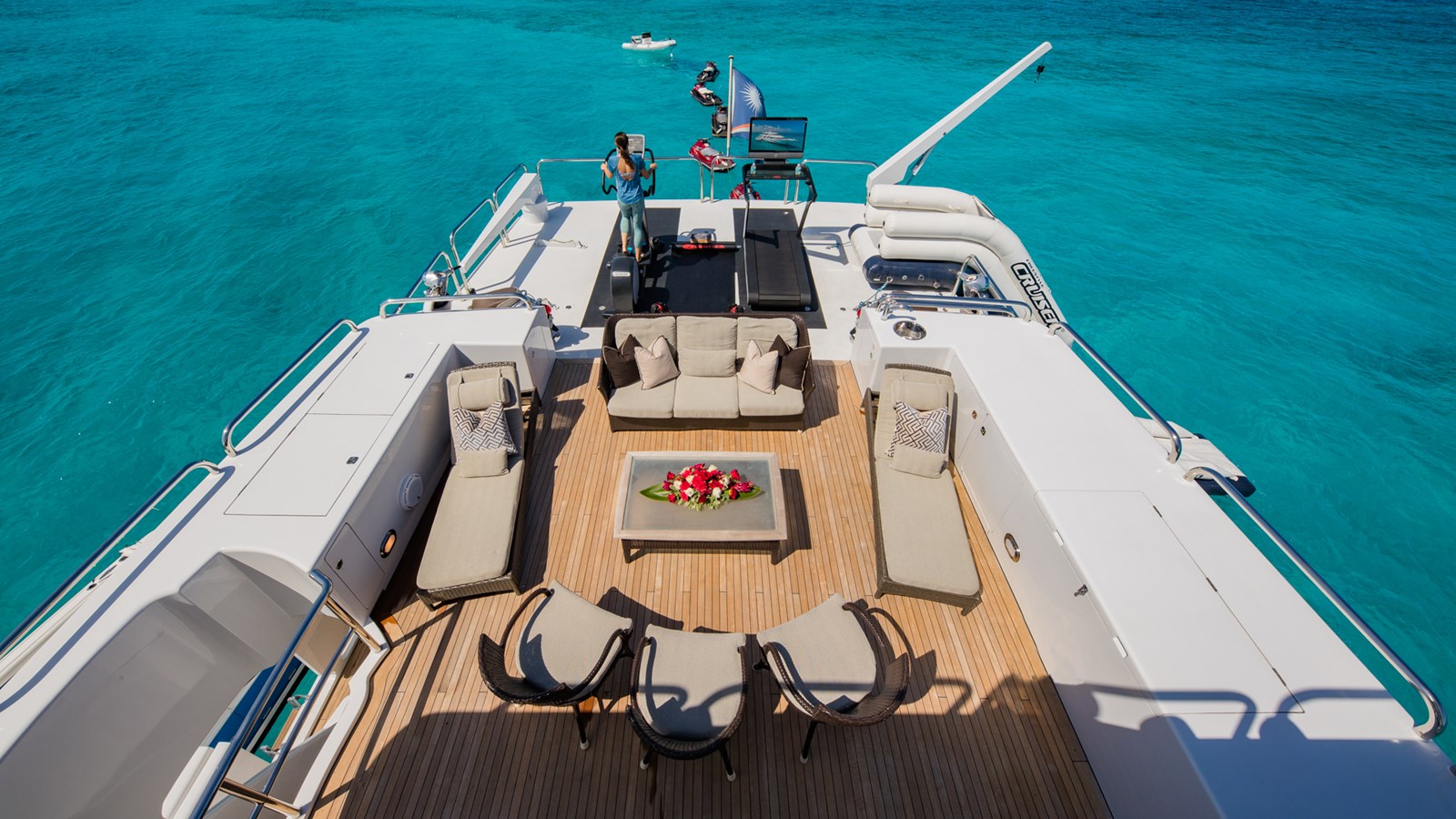 - Fully equipped for water sports: tenders, wave runners, sailboards, water skis, dive compressor