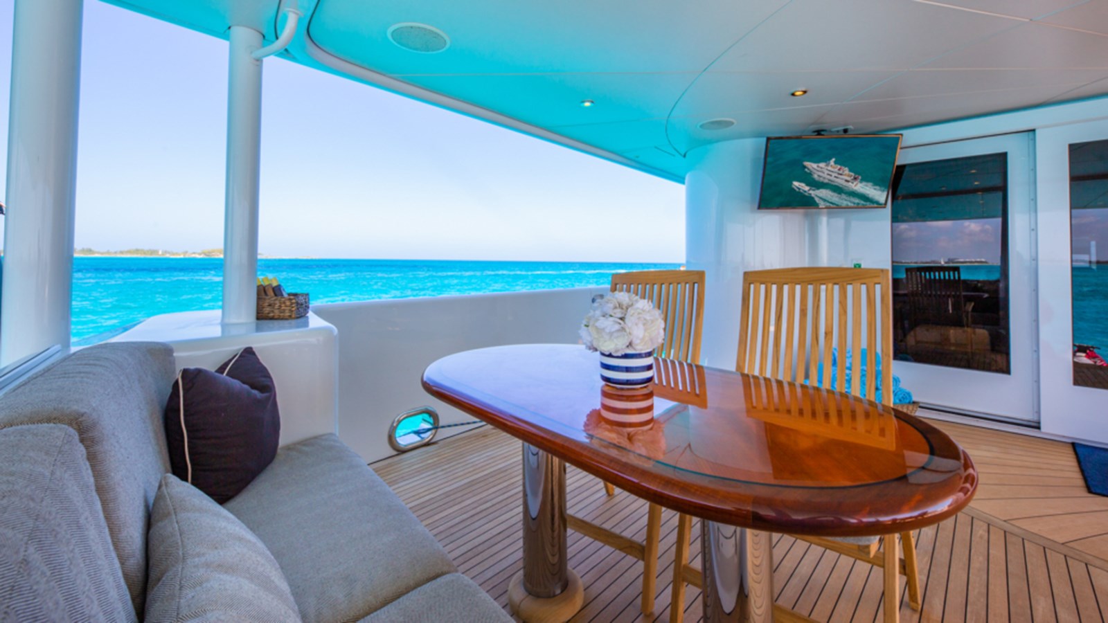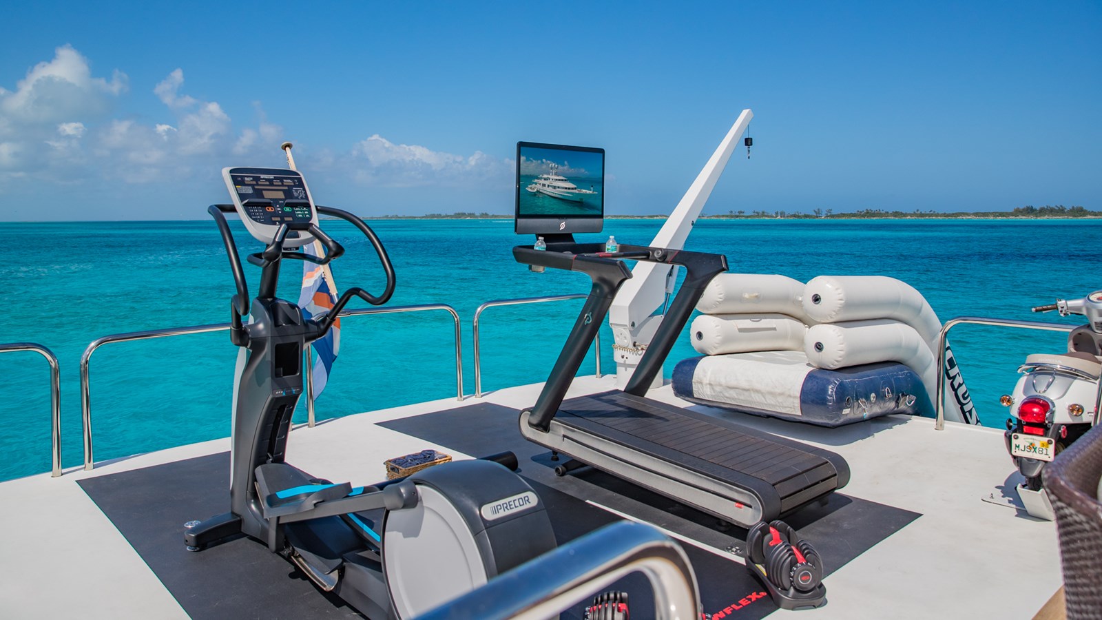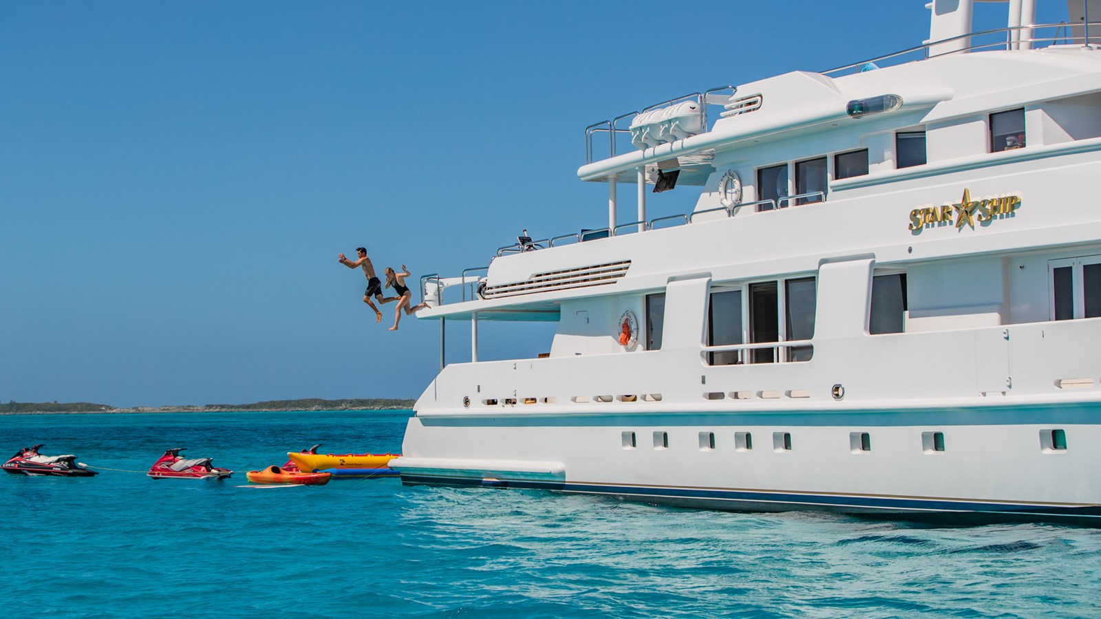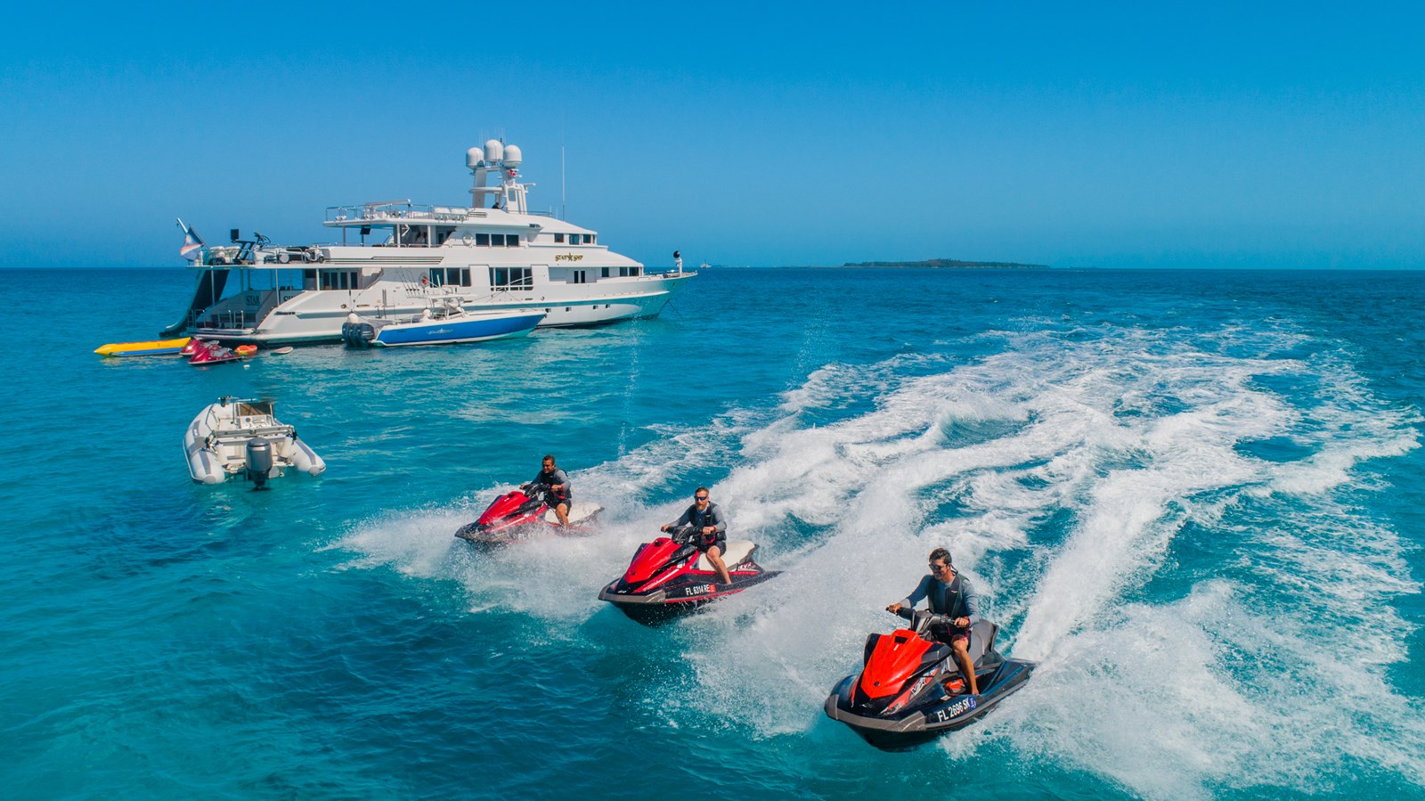 - Fully equipped for water sports including tenders, wave runners, motor scooters, sailboards, water skis, and dive compressor