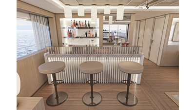 - Flybridge wetbar with sink, hot and cold water, electric barbeque, icemaker and refrigerator