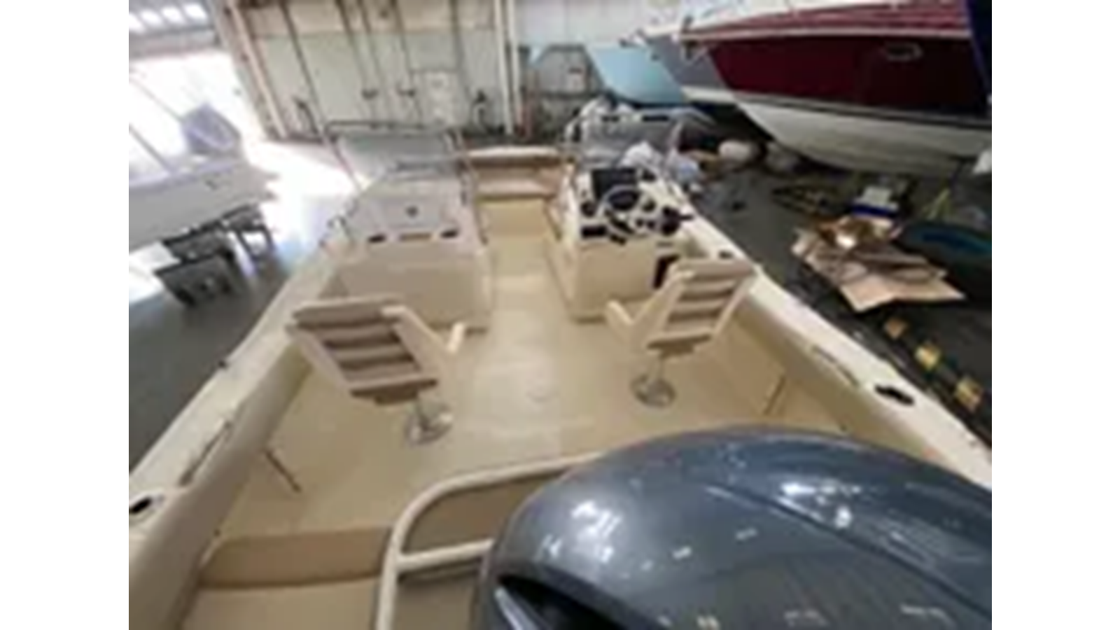 Silver Accent & Pinstripe on Hull • Battery On / Off Switch • S.S. Rub Rail • Shrink Wrap • Stern / Bow / Midship Pull Up Cleats • Stern Jump Seats • BayStar Hydraulic Steering • Tilt Helm • LED Under Gunnel Lights • Bow Cushion Set