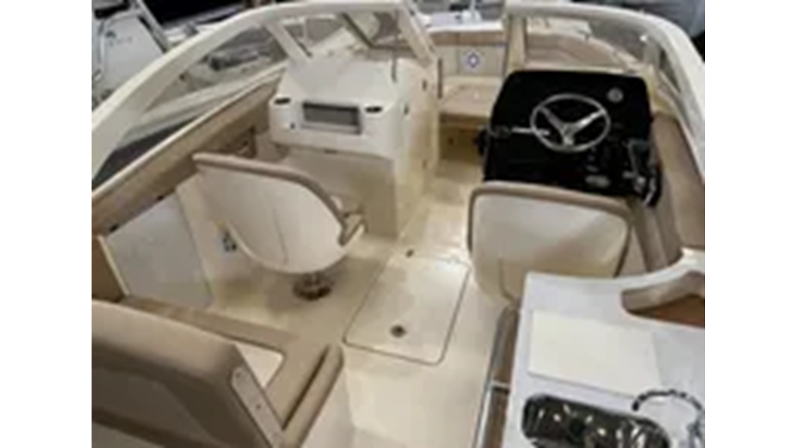 Our 240 Dorado showcases our NuV3 fuel efficient hull technology which affords you tremendous savings throughout your ownership. Loaded with family-friendly fishing features, this model comes standard with full transom swim platforms with synthetic teak foam pad and ladder, a port side fold down seat with folding table, fully cushioned bow seating and a stern seat in the transom among other features. An optional fiberglass hardtop is also available.