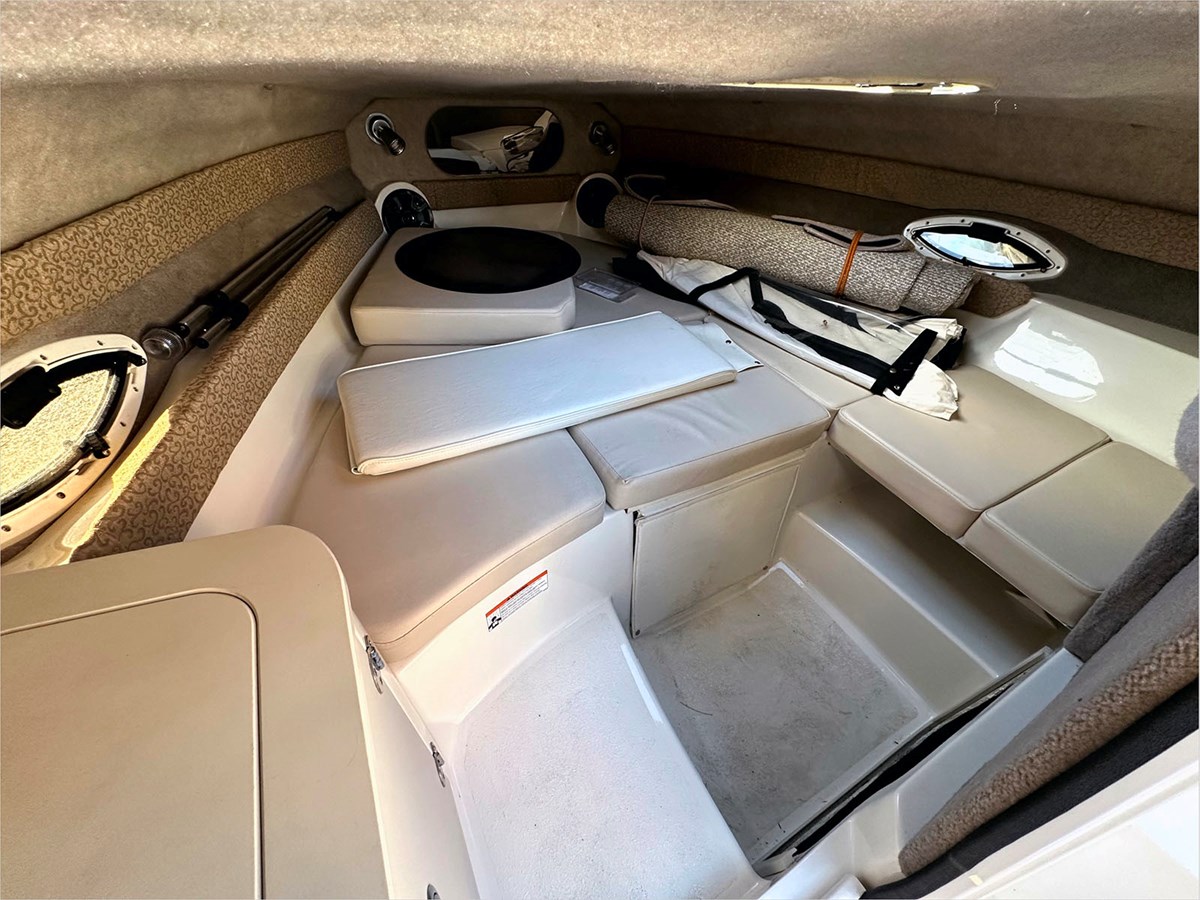 The 225CR is a robust boat designed for navigating rough waters, featuring ample freeboard for added safety and performance. Thanks to Stingray's Z-plane hull, it swiftly rises out of the water, achieving quicker speeds and a smoother ride. With a length just shy of 23 feet and a generous 8.33-foot beam, this boat offers a roomy cockpit and cabin, making it an excellent choice for comfortable overnight stays. A convenient recessed cabin step leads to the spacious V-berth with various amenities, while the bi-fold doors with smoke inserts and keyed entry lock offer added privacy.