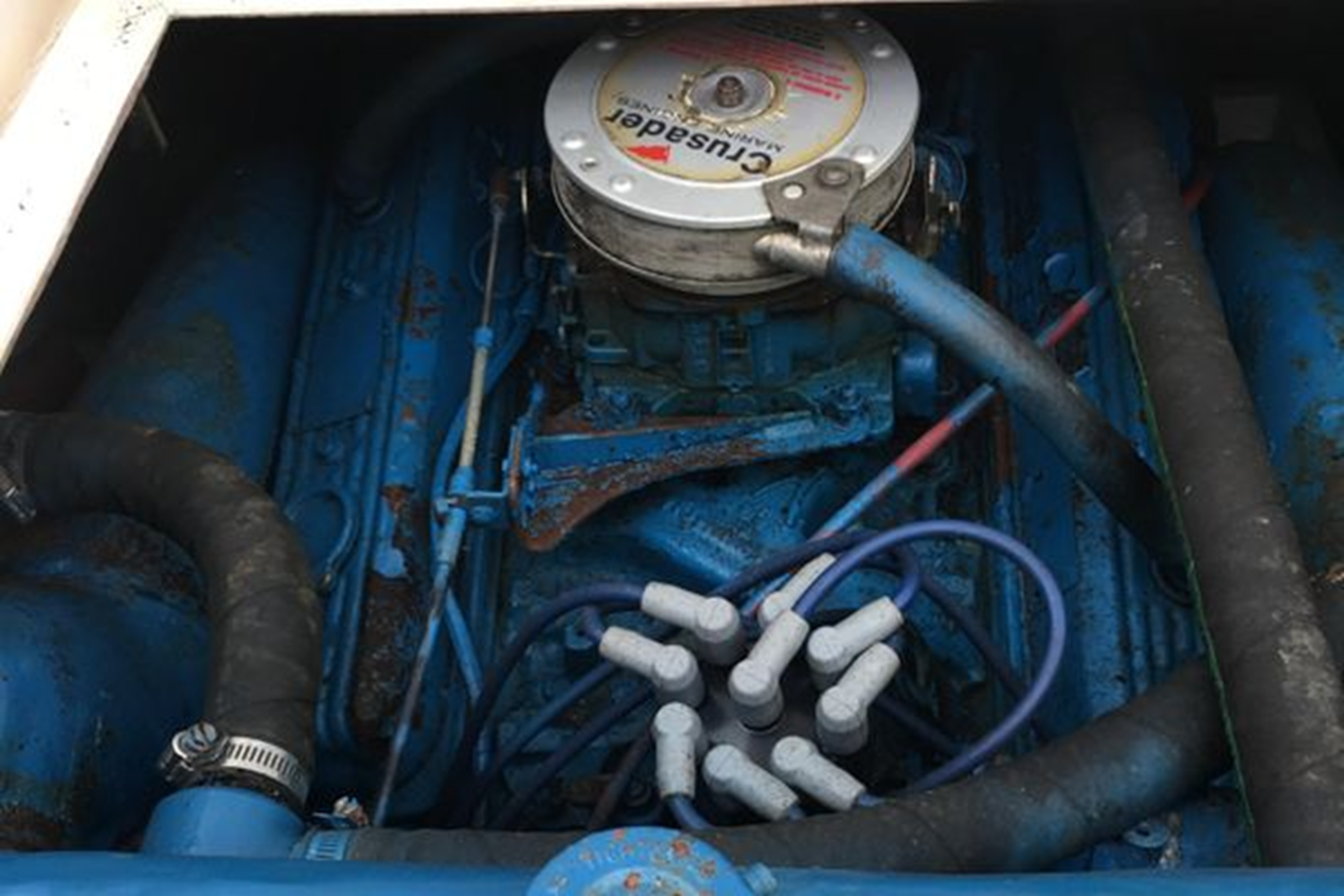 Rare North Coast 24ft with twin crusader engines 350 270 hp freshwater cooled. A very fast boat for the money and the hull and fiberglass is in great condition. Has a new bench seat in the cockpit and has 1200 hours on the motors with freshly service carburetors. Priced has been reduced as the seller is relocating or would otherwise be using it. Boat is shrink wrapped but can still be viewed with access through a custom door.