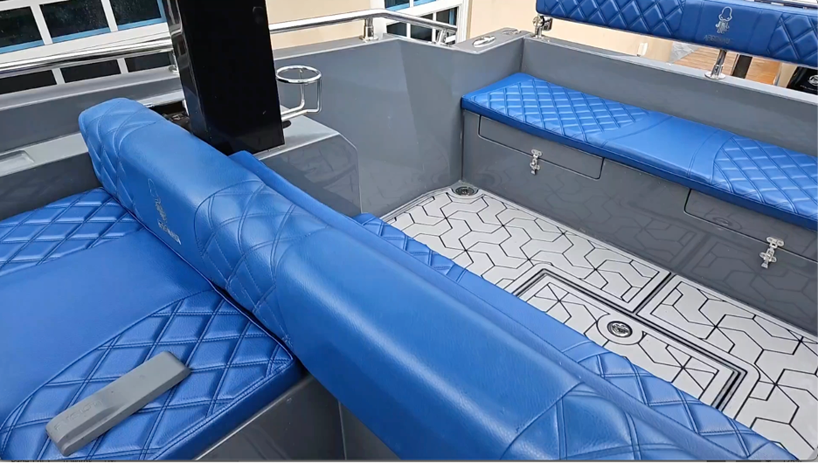 Custom Finishes – Slate grey hull, black hard top, diamond-stitched upholstery, and stainless detailing