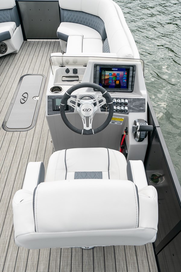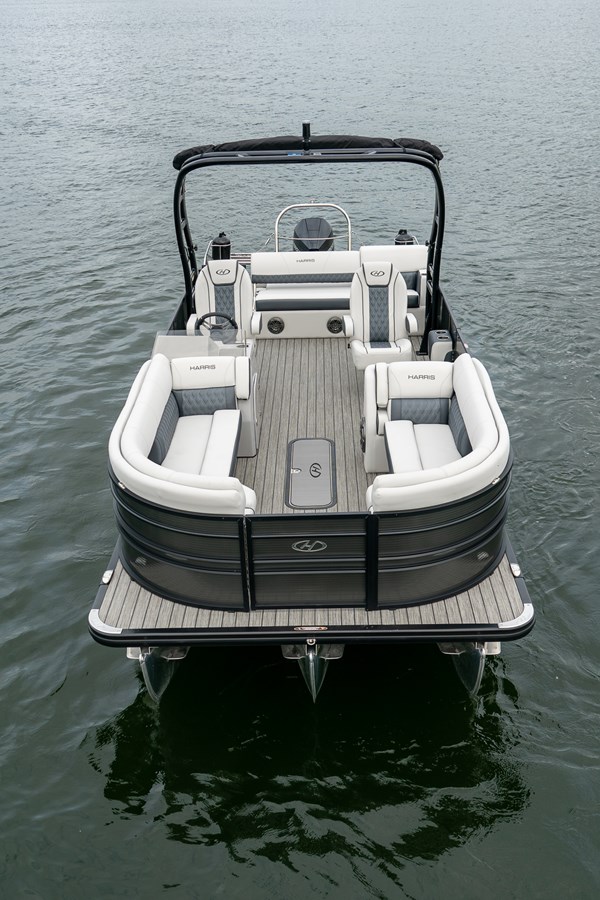 The 2023 Harris Sunliner 250 Sport is a versatile and luxurious pontoon boat designed for families and groups seeking both comfort and performance on the water. With an overall length of 25' 10" and a beam of 8' 6", it offers ample space for up to 15 passengers, depending on the seating configuration. The boat features a triple-tube design, enhancing stability and handling. Standard amenities include plush pillow-top vinyl seating, a walk-through windshield, and a Clarion Bluetooth audio system for entertainment. Whether cruising, entertaining, or fishing, the Sunliner 250 Sport combines style and functionality for an exceptional boating experience.