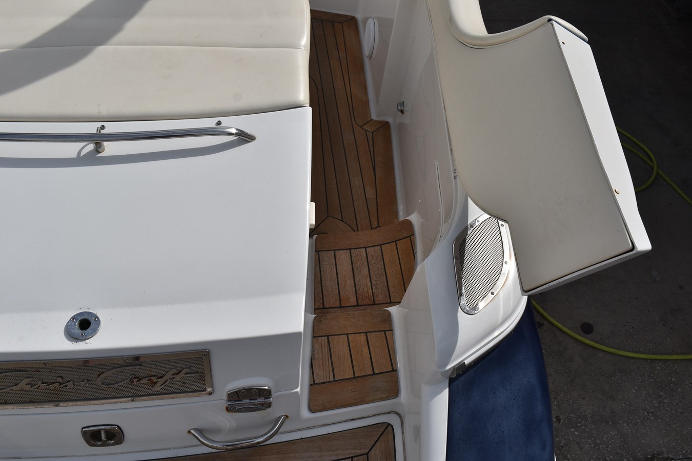 - Transom shower , boarding ladder , and self-draining cockpit