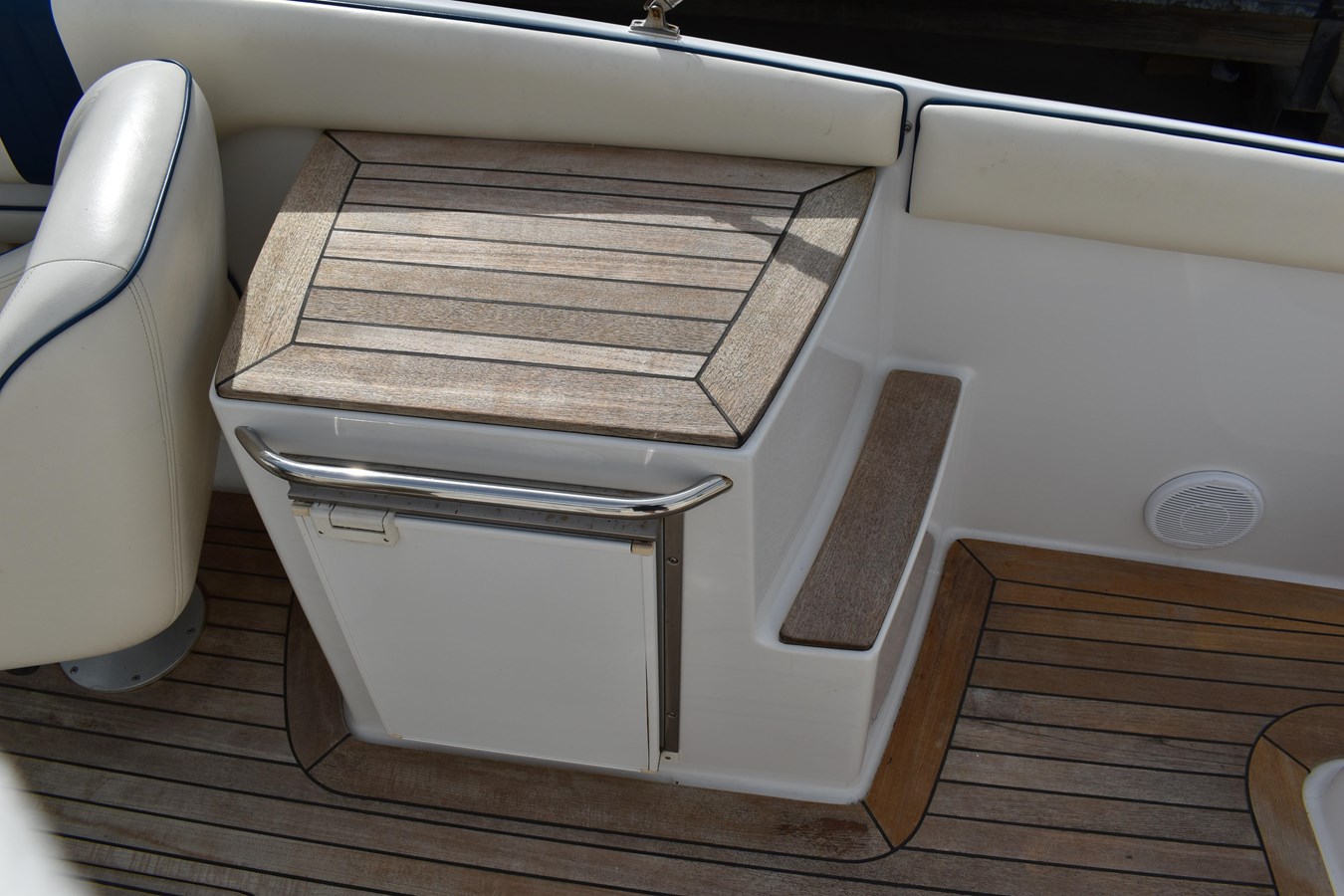 - Teak flooring throughout the cockpit and swim platform
