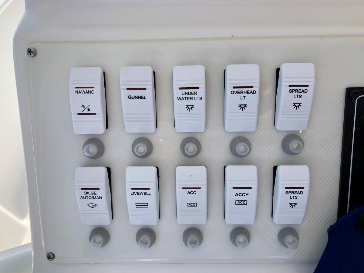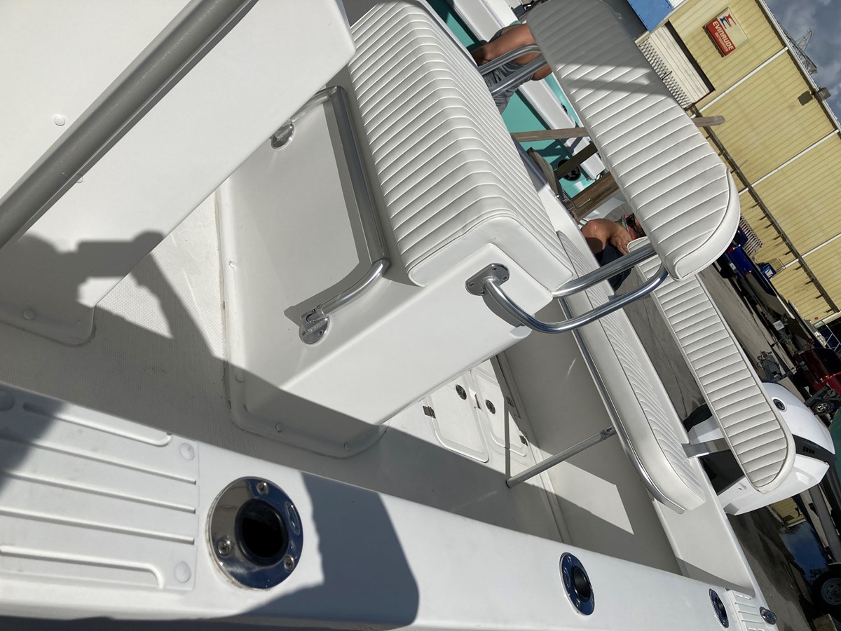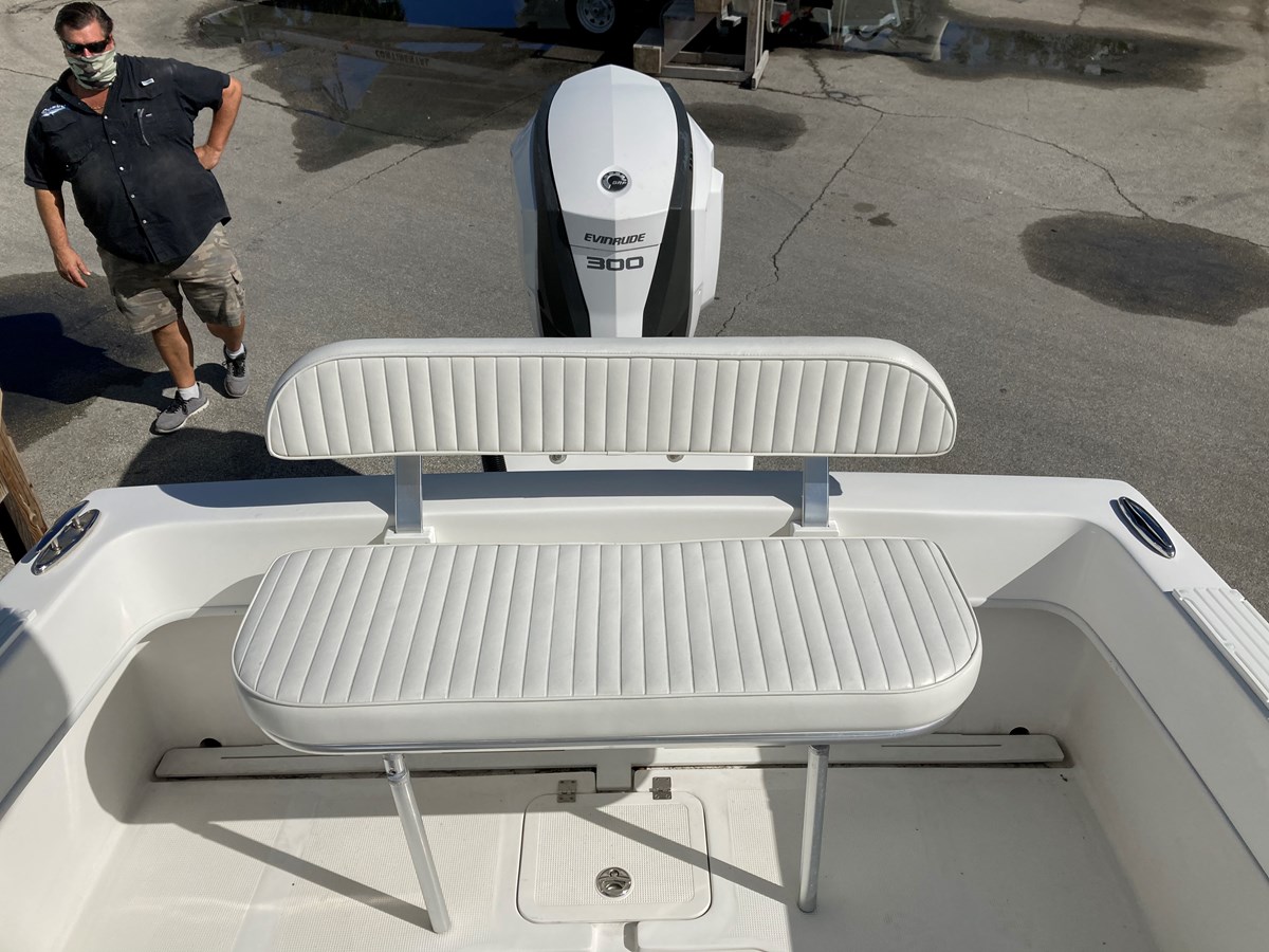 This 252 is complete with dual 12" Simrad EVO 3 Depth/GPS, Navico Sonic hub, Navico 4G radar with plate, Simrad Auto Pilot, Simrad VHS RS205, twin battery system, Lenco trim tabs, fold down transom seat with backrest, leaning post with livewell, saltwater washdown, Sirius weather radio, transom mount 3D transducer, 20 degree SS transducer, aluminum deluxe console t-top, SeaDek Bolster and more!
