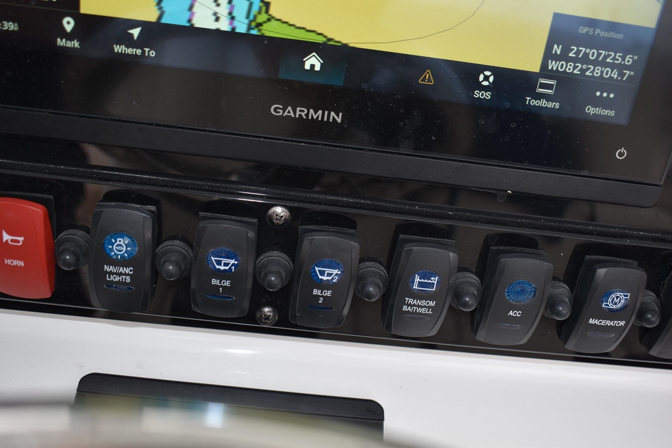 - Garmin GPSMAP touchscreen with sonar and chart plotter