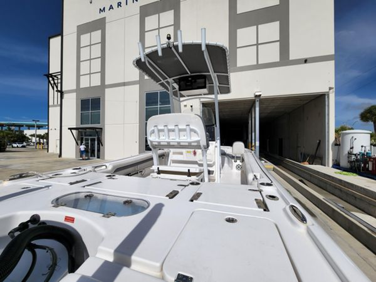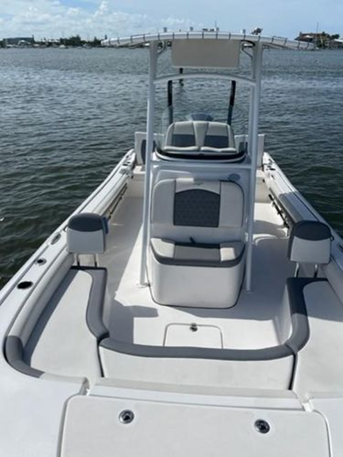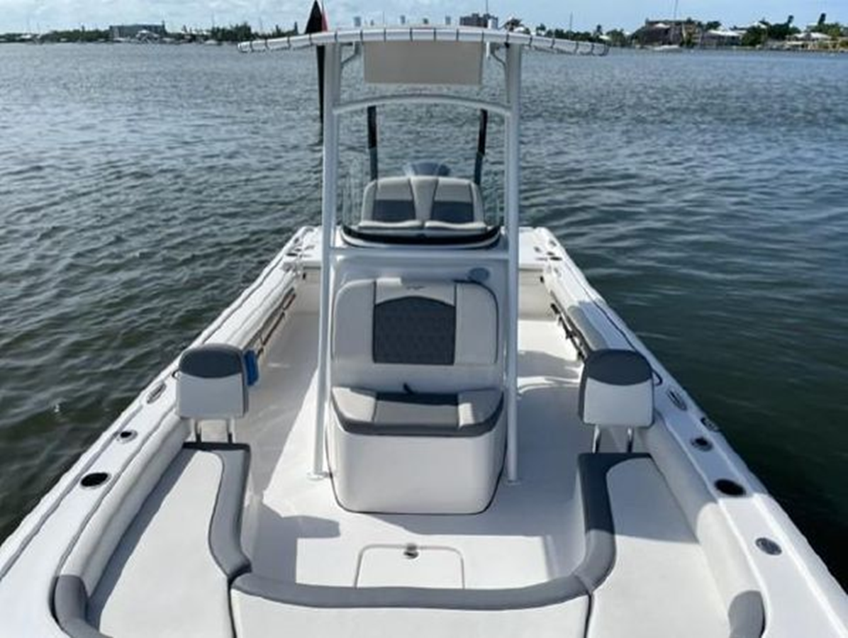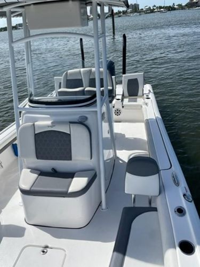 The 2019 - 2500 Carolina Bay model is a large, stepped bottom, feature full, high end, family friendly performance bay boat. Custom with Canvas T-Top Powder Coat White! Check out the many features! Beautiful for an enjoyable day on the water!