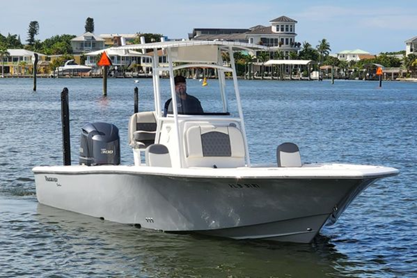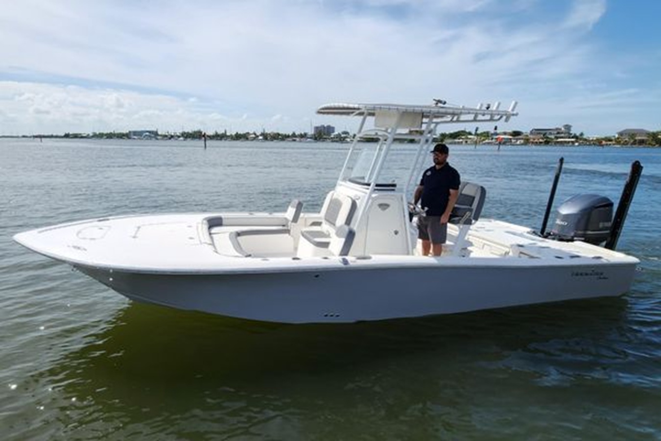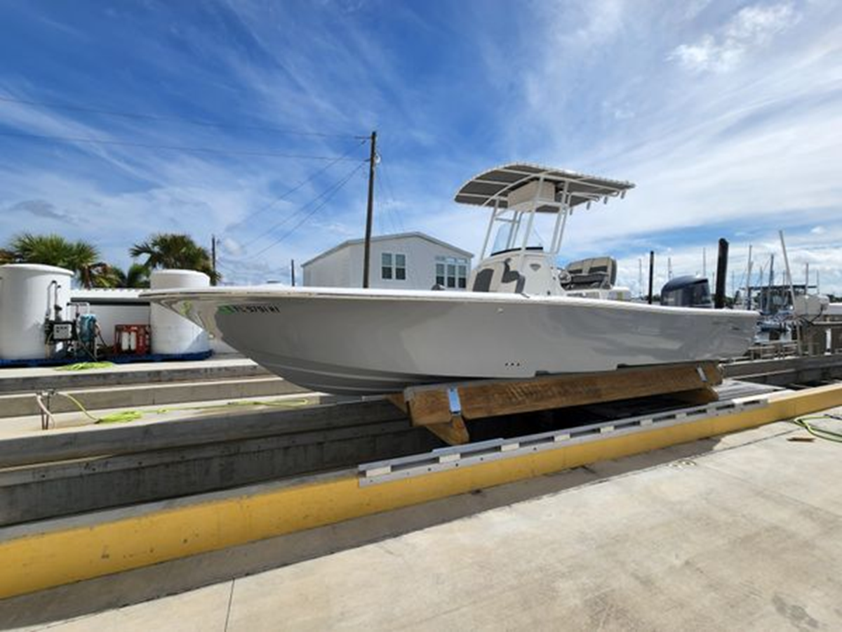 The 2019 - 2500 Carolina Bay model is a large, stepped bottom, feature full, high end, family friendly performance bay boat. Custom with Canvas T-Top Powder Coat White! Check out the many features! Beautiful for an enjoyable day on the water!