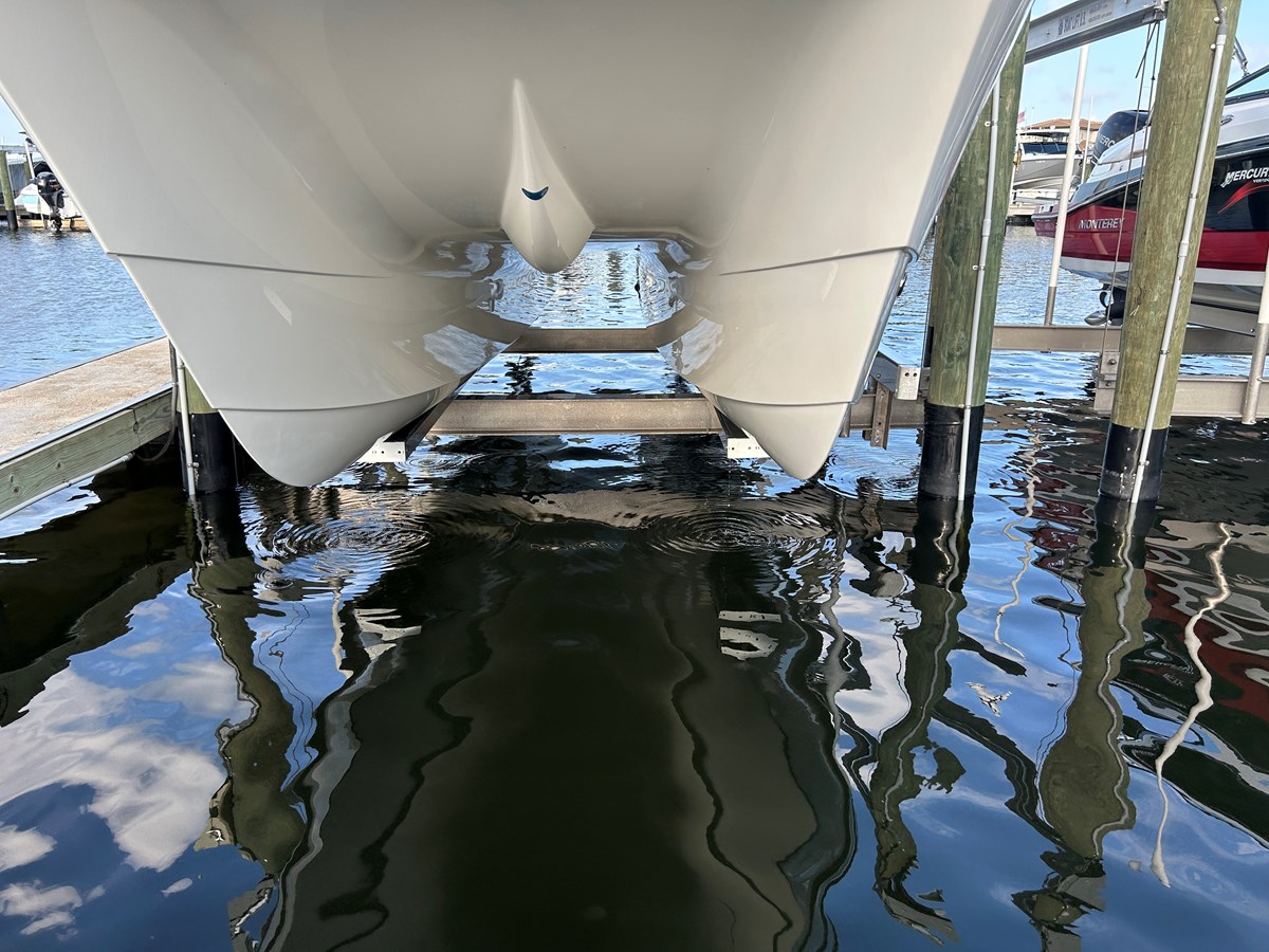 • Fiberglass Hardtop w/ LED Spreader Lights (1 aft, 1 fwd), Blue/White/Red LED Recessed Lights (4), Outrigger Mounting Location